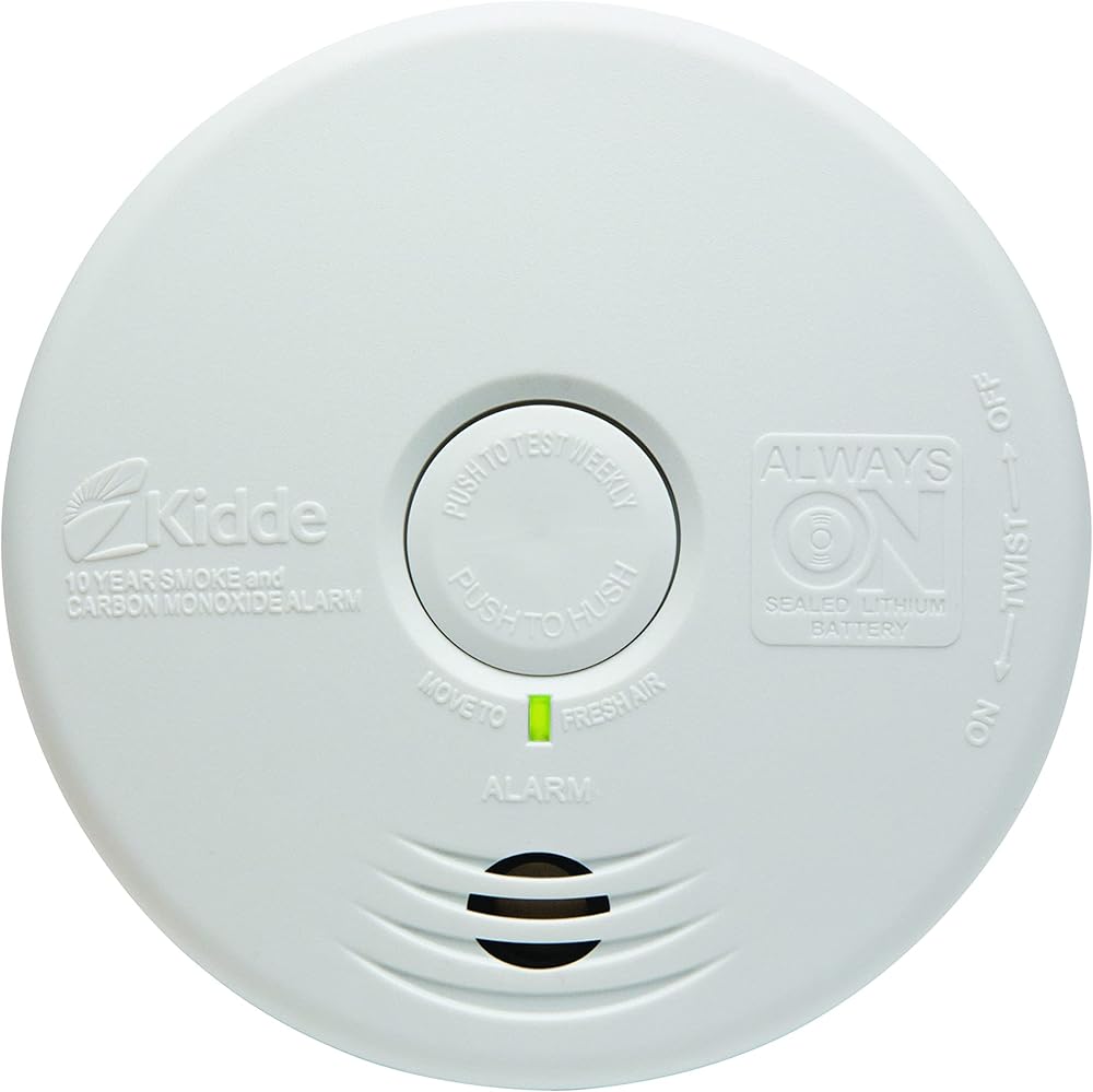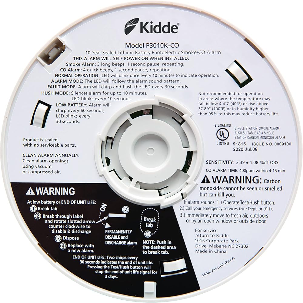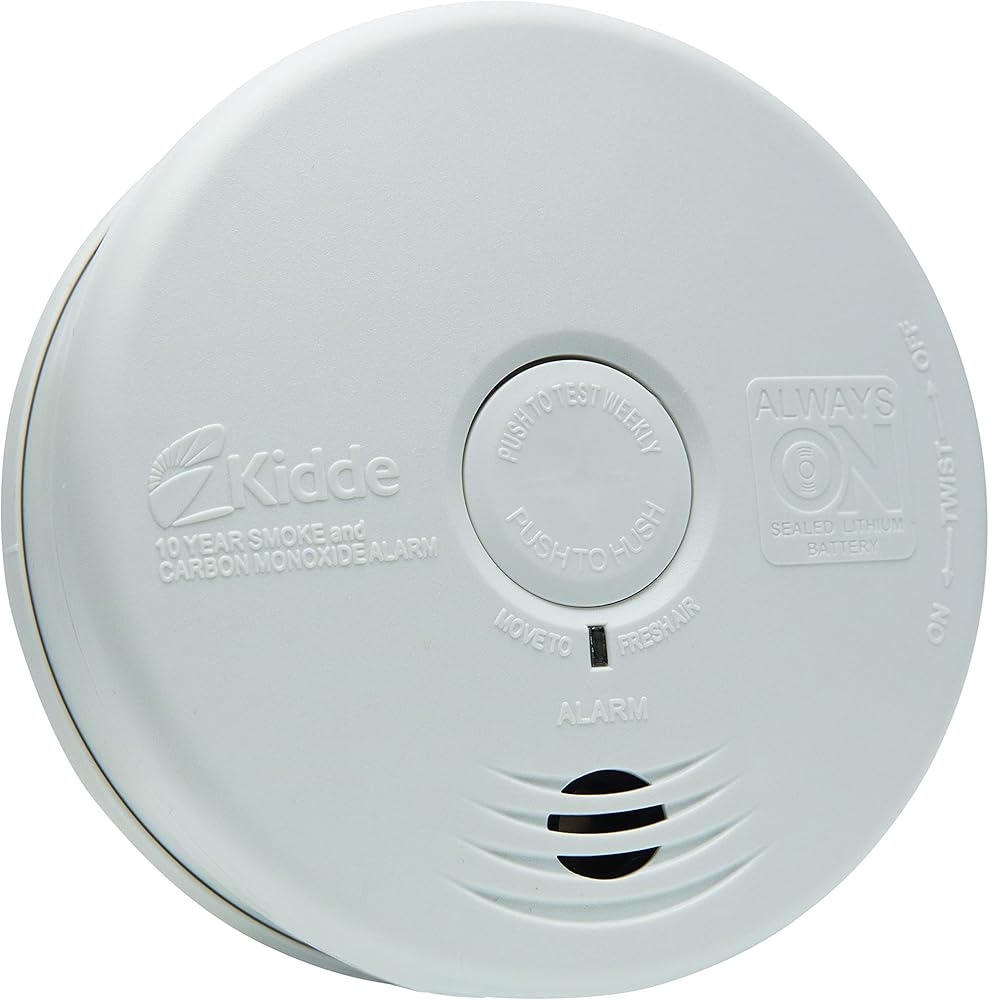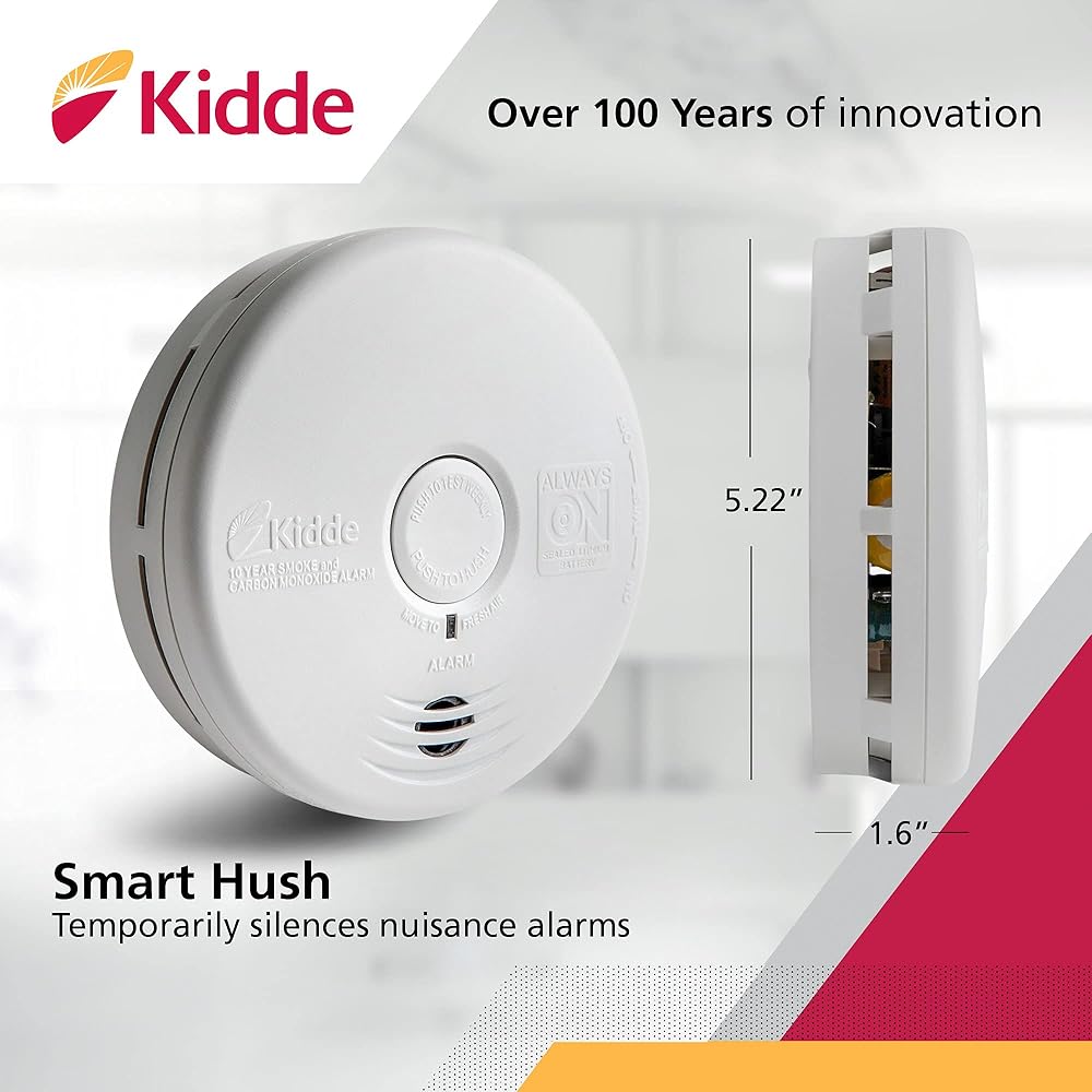 Experience the next level of fire safety with the Kidde Smoke & Carbon Monoxide Detector, 10-Year Battery Powered, LED Warning Light Indicators, model 30CUD10. This smoke & CO detector has enhanced sensing technology that reduces false alarms often caused by cooking and sends fast alerts that help give your family more time to get out safely. To detect carbon monoxide, an electrochemical sensor is used. This alarm offers a modern 5-inch design ideal for all living spaces such as living rooms, hallways, kitchens, & bedrooms. Comprehensively tested and designed to the latest UL standard for safety and reliability, the 5-inch combination smoke & CO alarm is powered by a 10-year built-in lithium battery, so you never have to change a battery for the life of the detector (not a battery performance claim). In addition, it's self-testing and easy to install with the included twist-and-click mounting bracket. This Kidde combination alarm is equipped with end-of-life notifications that will beep to remind you it's time to replace it at the of its 10-year lifespan. Meets requirements of 9th Edition UL 217, UL 2034 4th Edition, FCC, and CSFM.