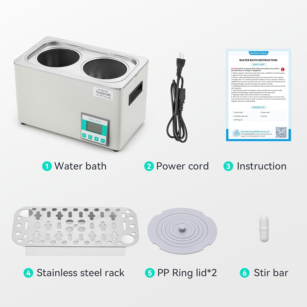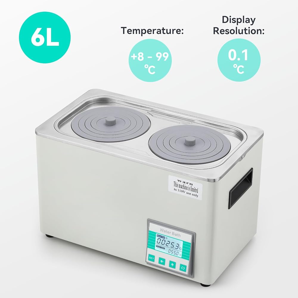 حمام مائي BAOSHISHAN سعة 6 لتر، حمام مائي رقمي مع شاشة LCD بإضاءة خلفية، دقة درجة حرارة 0.1 درجة مئوية وميزات أمان لدرجة الحرارة الزائدة