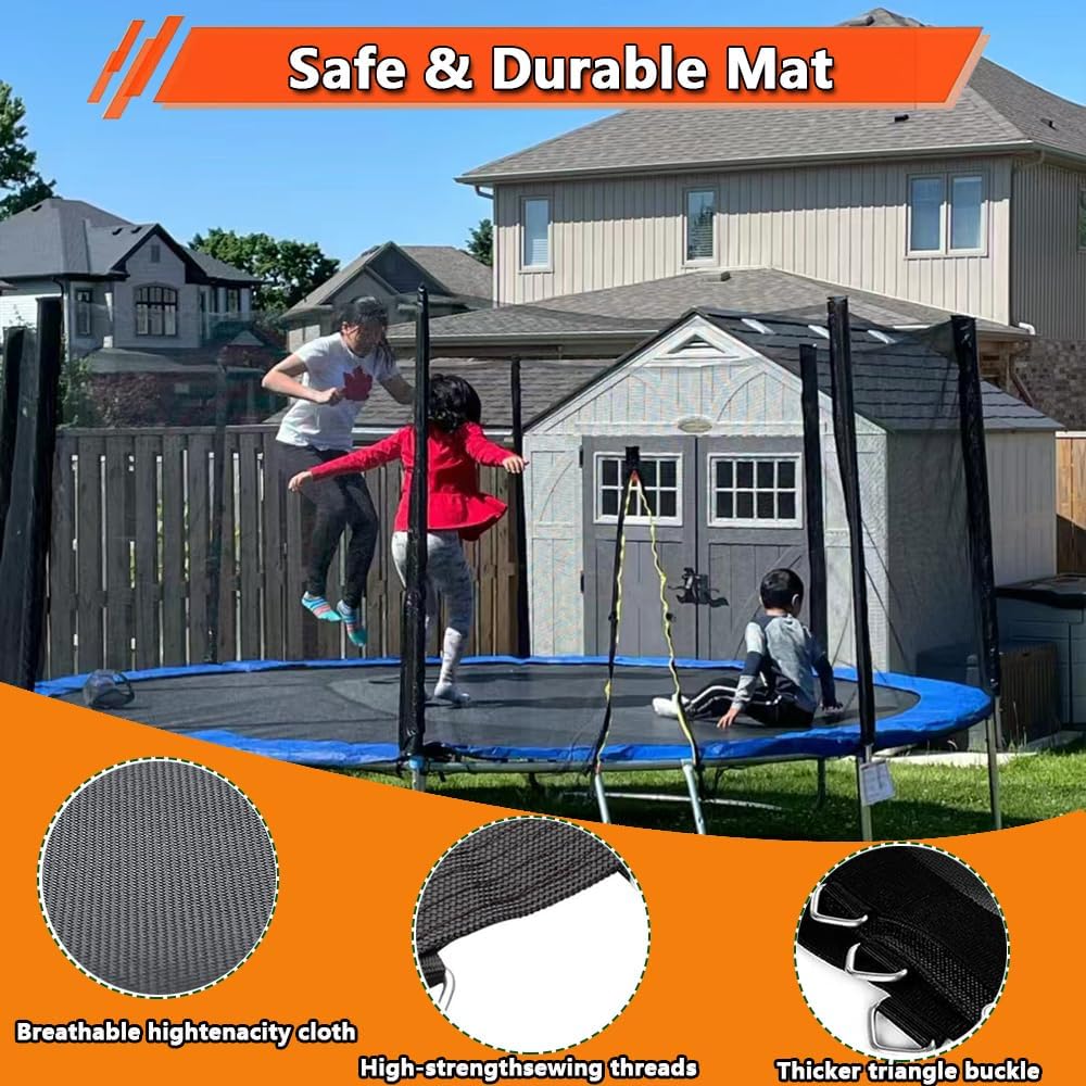 Revitalize your 12 ft trampoline with a brand new mat replacement designed to handle the jumps and bounces of energetic kids and adults alike. This 72-spring mat is expertly crafted to deliver a smooth, responsive bounce while ensuring optimal safety. Constructed with durable, weather-resistant materials, it promises long-lasting performance even under intense outdoor conditions. Installation is a breeze, allowing you to quickly restore the thrill of your backyard trampoline. With this replacement mat, you can extend the life of your beloved trampoline and continue creating cherished memories of airborne fun for years to come. Order now and elevate your jumping experience to new heights!