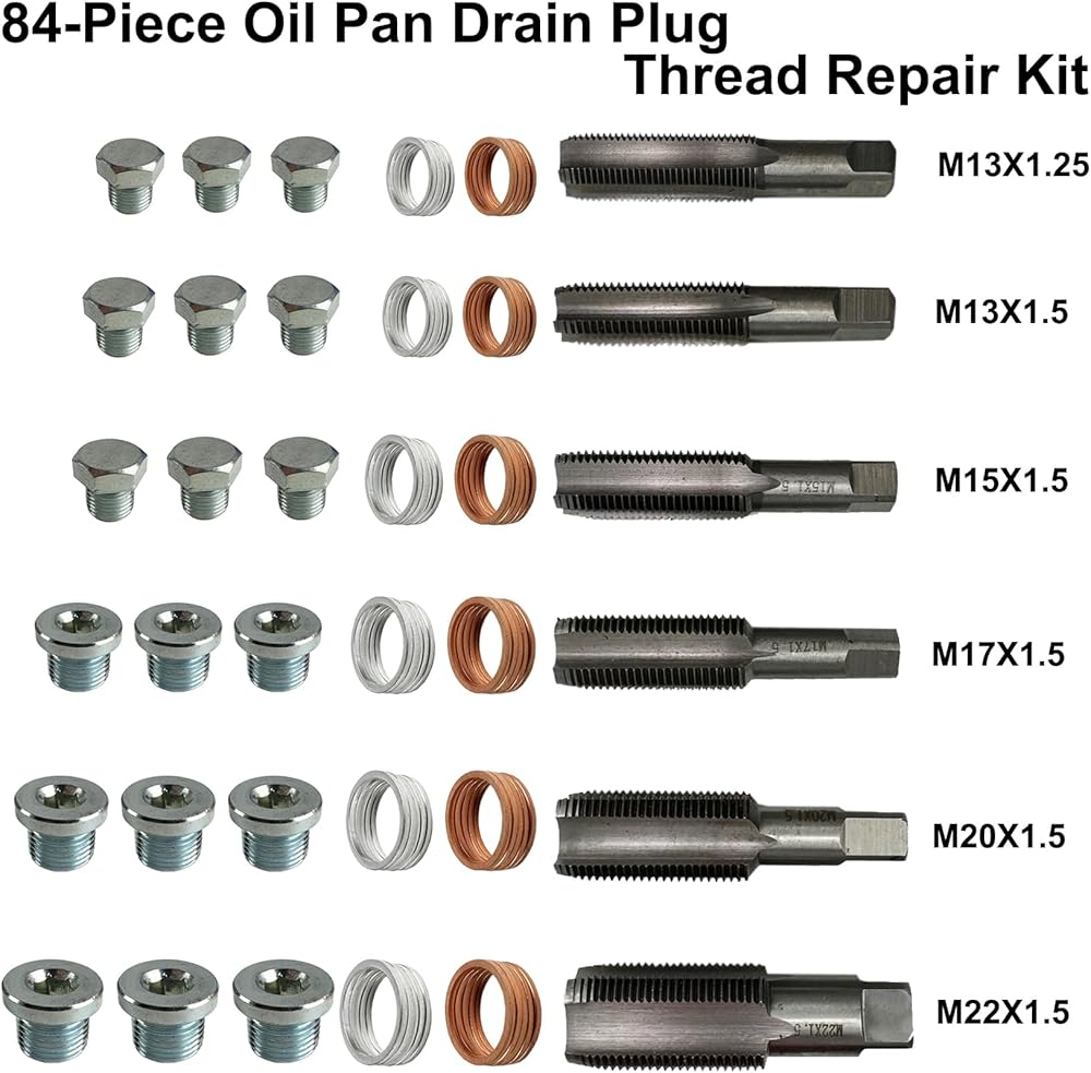 TR TOOLROCK 84 قطعة طقم إصلاح قابس تصريف الزيت، طقم إصلاح قابس تصريف الزيت المتري، M13 M15 M17 M20 M22