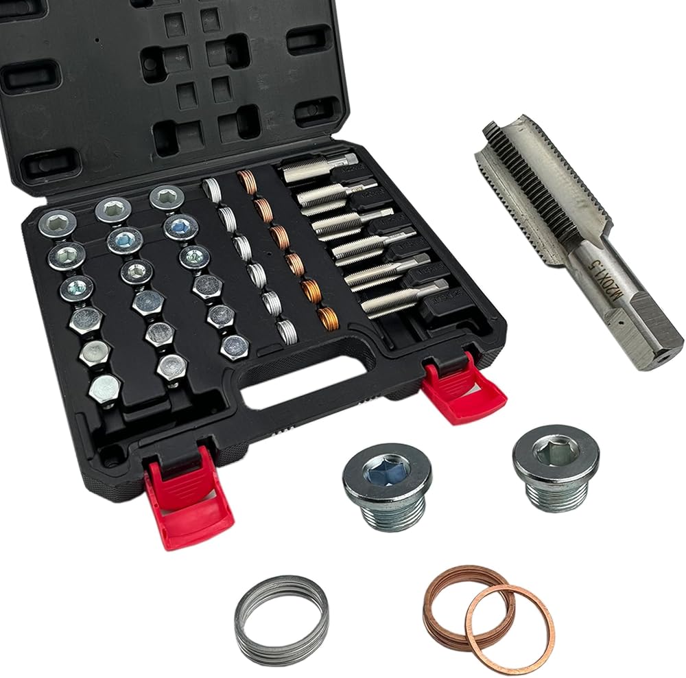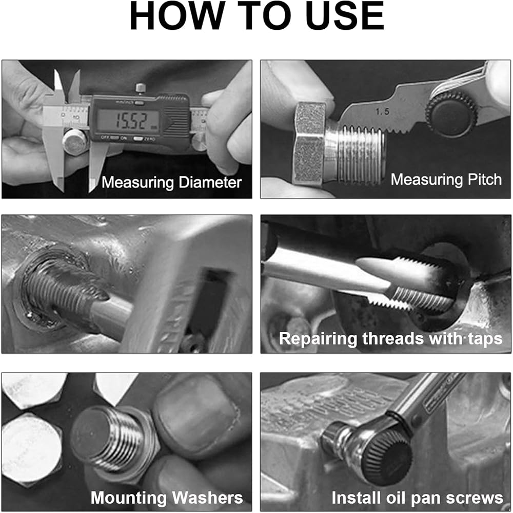 • 【EASE TO USE】Oil Pan Thread Repair Kit is used to tap the damaged thread slightly over size, then fit a new drain plug and washer supplied.