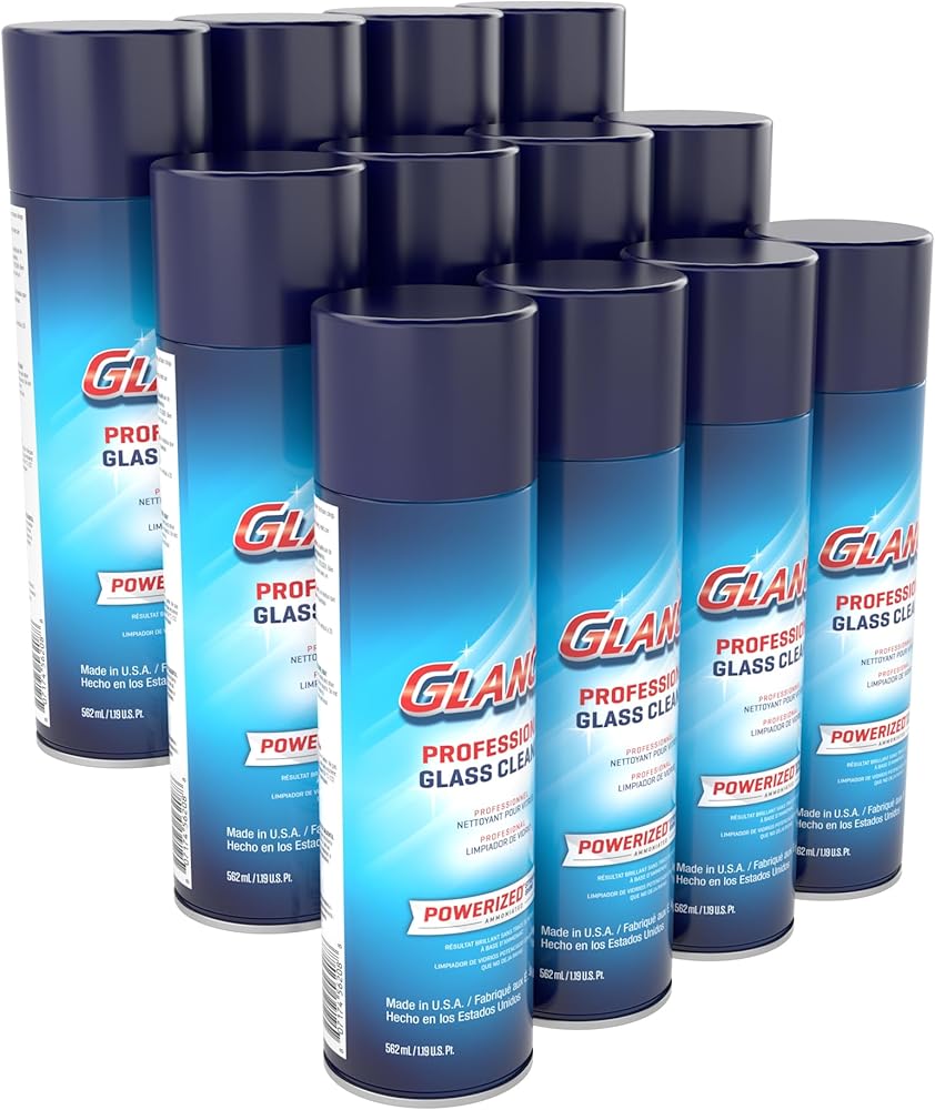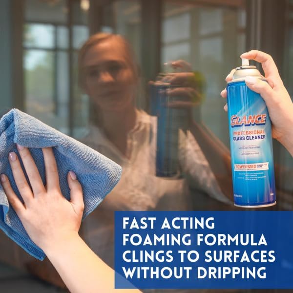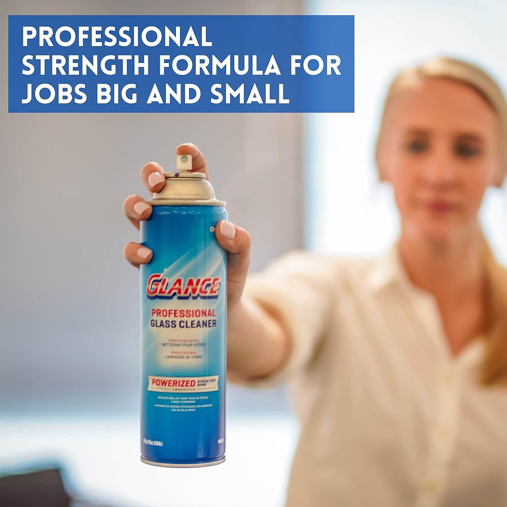 GLANCE 101109731 Powerized Professional Glass Cleaner, Foaming Formula Clings to Windows, Mirrors & Hard Surfaces, Aerosol Spray, 19-Ounce (Pack of 12)
