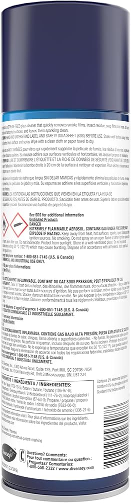 • Removes fingerprints, smoke film and haze leaving a crystal clean shine. Large 19 ounce spray can with no dripping, no running and no streaking