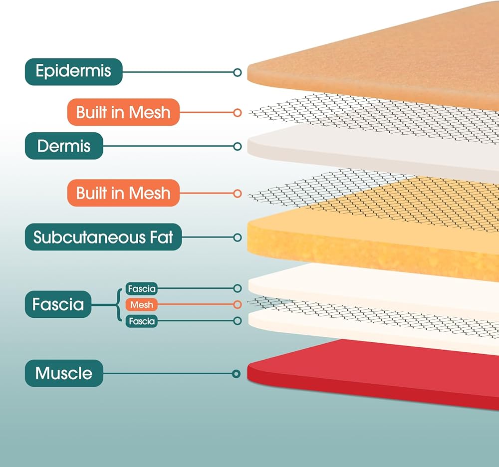 【مادة ممتازة】: مصنوعة من مادة سيليكون خالية من اللاتكس صالحة للطعام، وسادة خياطة السيليكون الخاصة بنا غير سامة وقابلة لإعادة الاستخدام وعديمة الرائحة. البناء المكون من 5 طبقات بكثافات متفاوتة يحاكي بنية الجلد تشريحيًا.