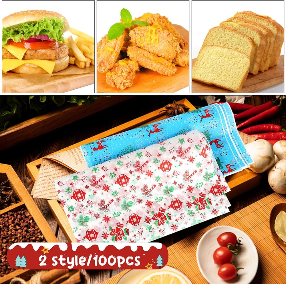 استخدام واسع: هذه الملاءات الورقية من الشمع لعيد الميلاد ليست مناسبة فقط لتغليف الطعام وبطانة سلال الطعام، مثل الساندويتشات والخبز واللفائف والحلوى، ولكن يمكن استخدامها أيضًا لبطانة سلة الطعام أو تغليف الهدايا.