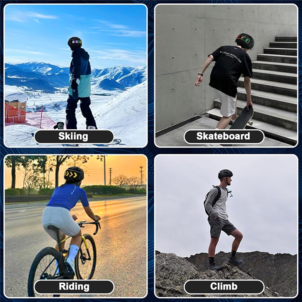 ميزات أمان محسنة: توفر خوذة الدراجة الخاصة بنا تحديثات الحالة في الوقت الفعلي، بما في ذلك السرعة وإشارات الانعطاف إلى اليسار/اليمين ومؤشرات التوقف. تساعد هذه الوظائف على ضمان رؤية السائقين والمشاة لك، مما يعزز سلامتك بشكل كبير أثناء الركوب، خاصة في ظروف الإضاءة المنخفضة