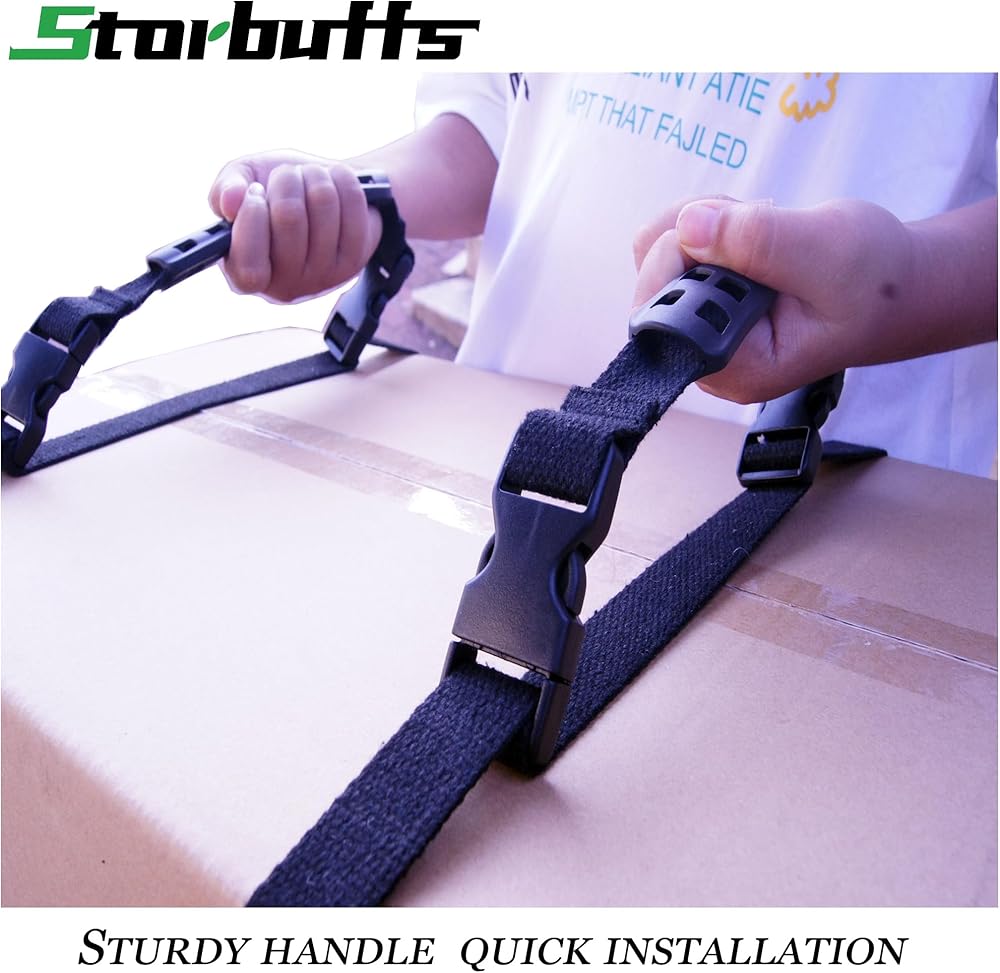 أشرطة متحركة تحمل حزام رفع بمقبض لمحرك واحد أو اثنين | قابل للتعديل وقوي | لحمل الصناديق الثقيلة بسهولة وآمنة وآمنة، والخيمة، والأمتعة، وكراسي الشاطئ، والكتب، وظهر الكتف اليدوي، أسود