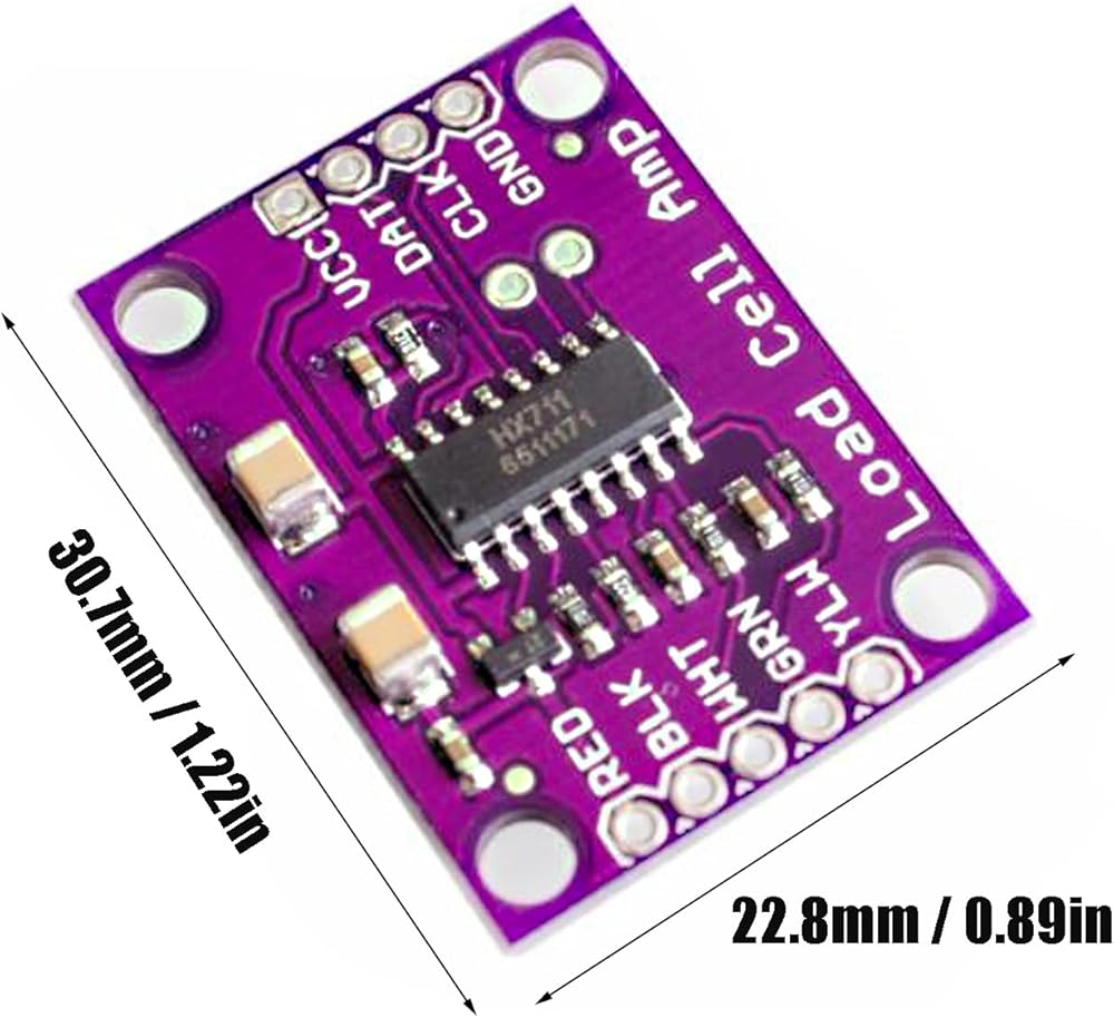 • HX711 Load Cell Electronic Weighing Sensor is a 24-bit A/D Converter Chip Which Designed for High Precision Electronic Scales: Working Voltage: 2.6 - 5.5V; Typical Operating Current: 1.7mA; Power Down Current: <1 μA
