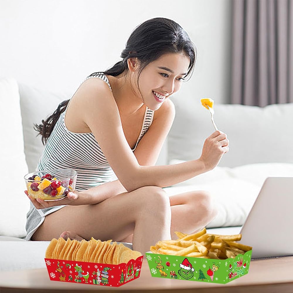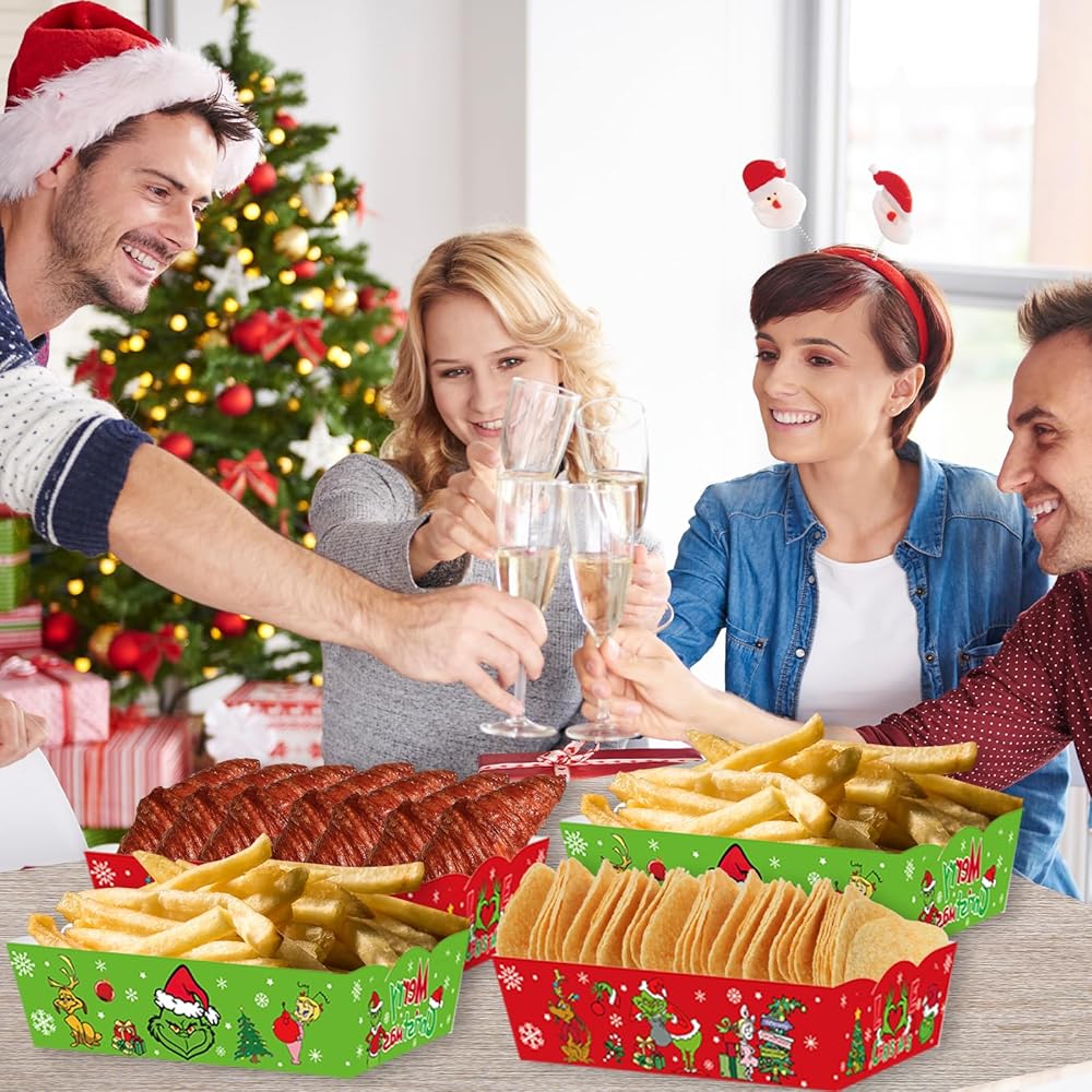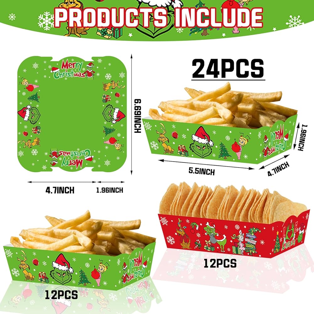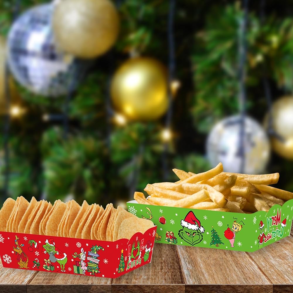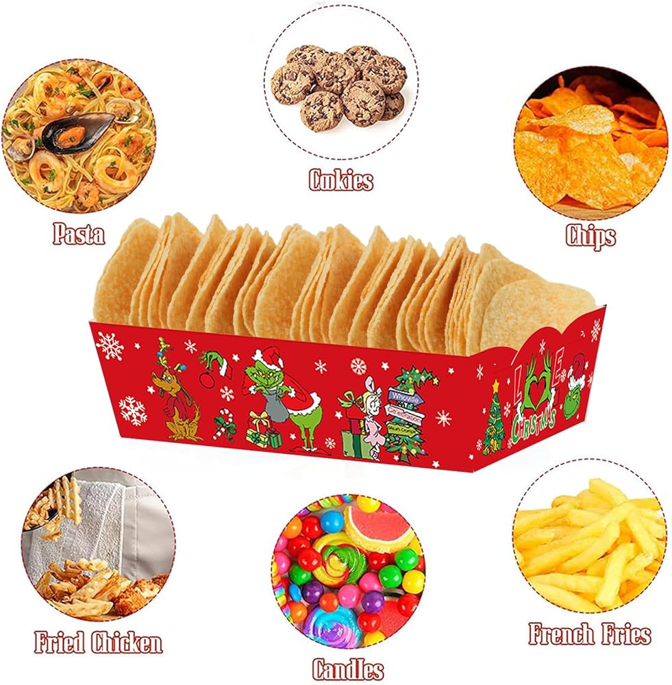 - Festive Design: These 24 paper food trays feature a vibrant Christmas-themed design, perfect for serving treats at holiday parties.