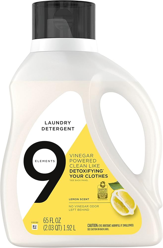 9 Elements Laundry Detergent, a plant based* laundry detergent that cleans so thoroughly, it's more than clean, it's a cleanse. Vinegar-powered 9 Elements Laundry Detergent rids fabrics of residues left behind after every wash like hard water metals and dingy build-up while removing tough stains and odors. Our breakthrough formula has no artificial preservatives, dyes, thickeners, or brighteners and is gentle on sensitive skin.