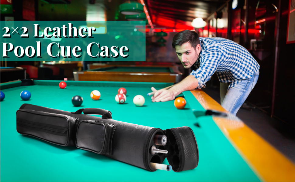 حقيبة عصا البلياردو 2 × 2، حقيبة عصا حمام السباحة من جلد البولي يوريثان تحمل ما يصل إلى 2 مؤخرة وعمودين حتى 58 بوصة، حقيبة عصا البلياردو مع أحزمة كتف، ملحقات البلياردو