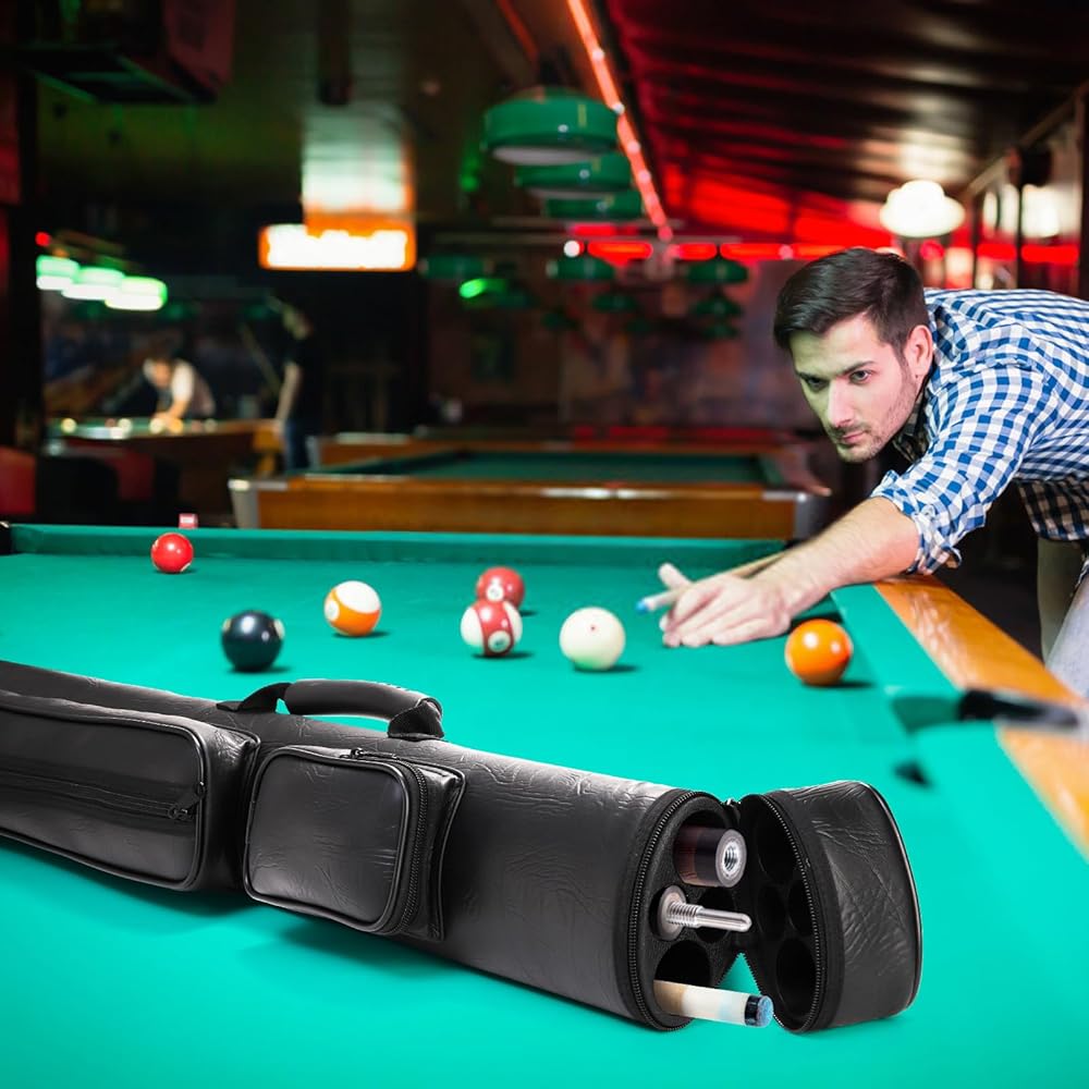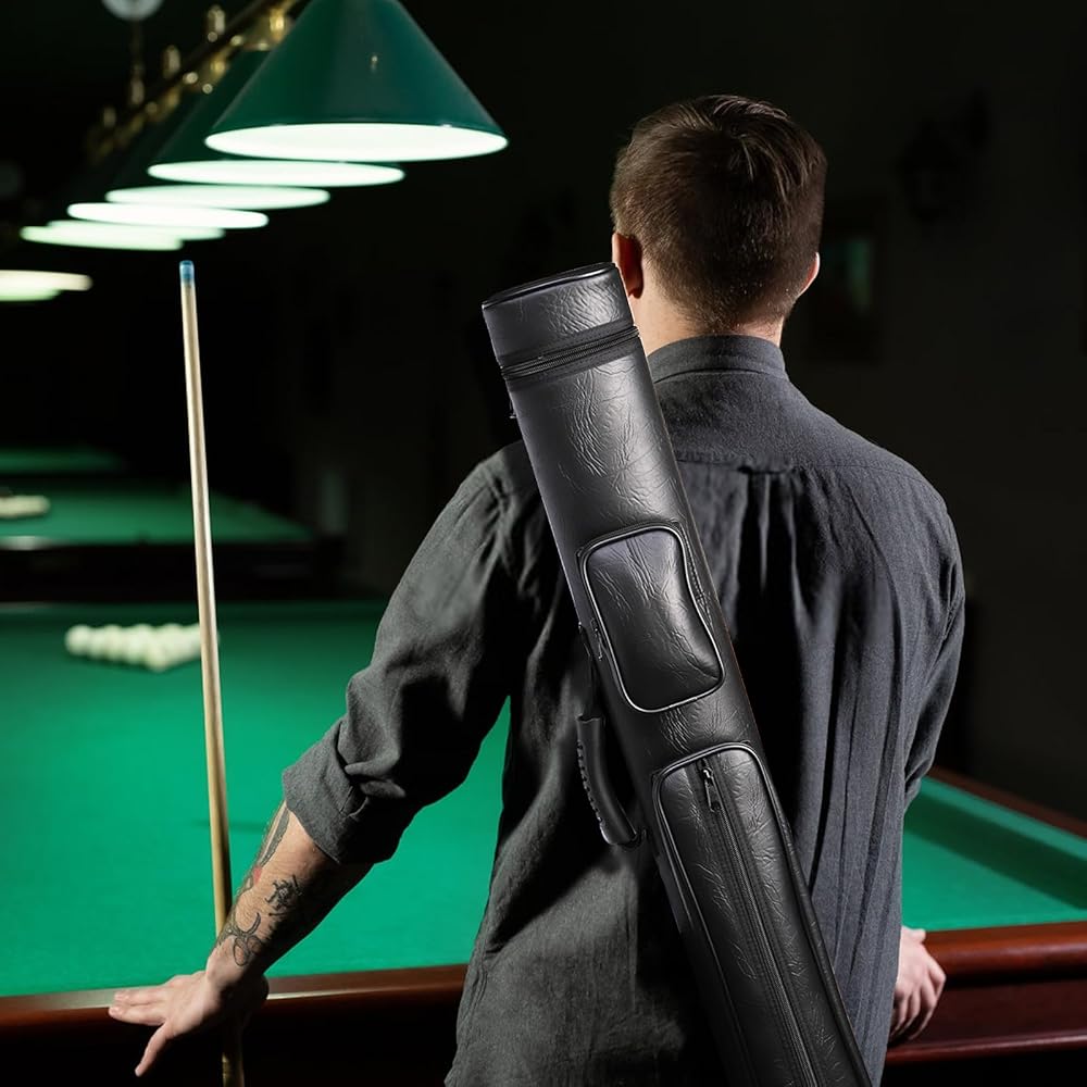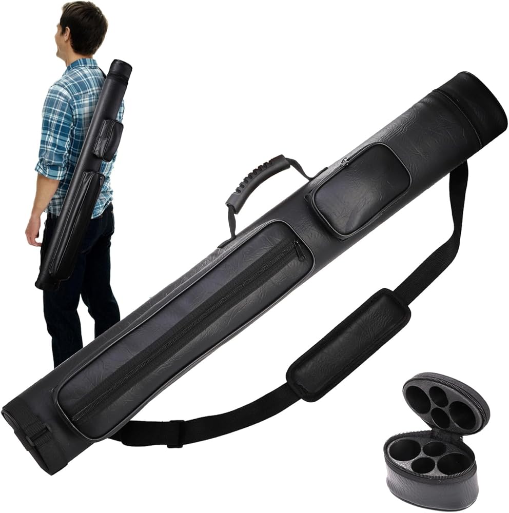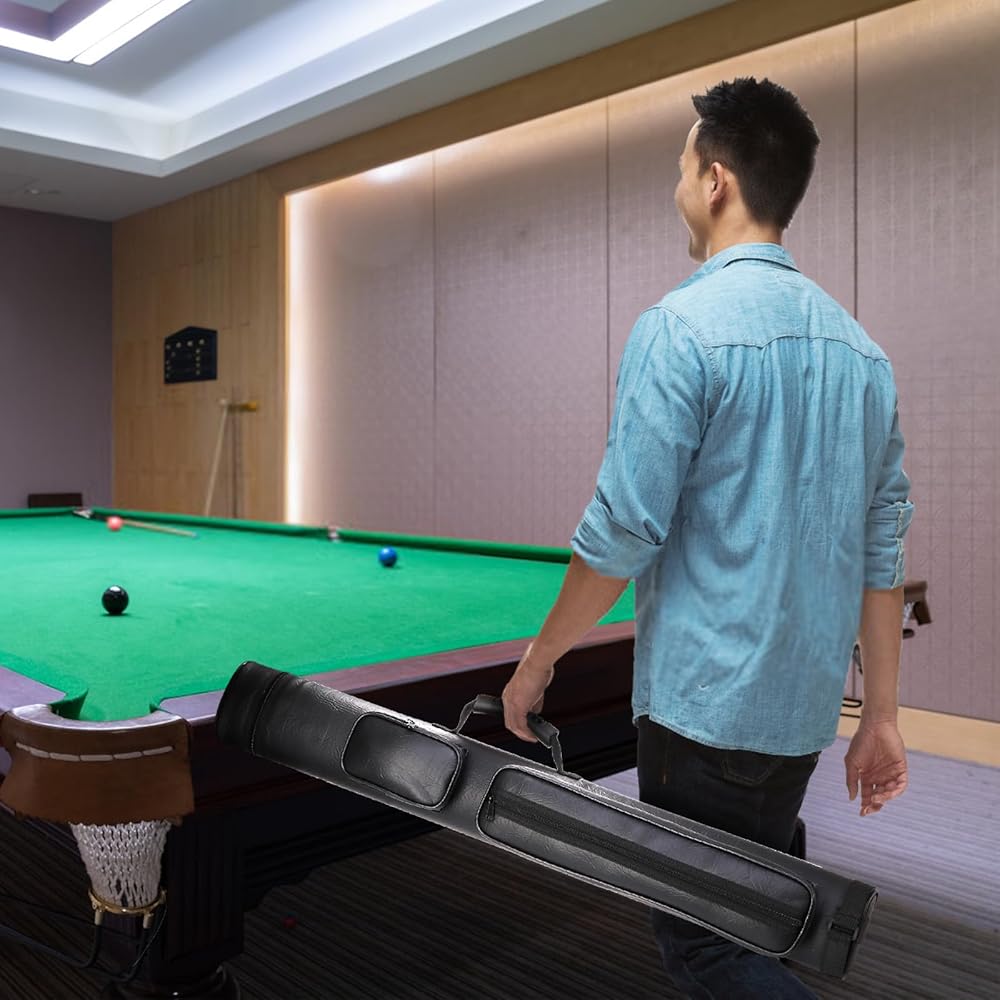 حمل محمول: تم تصميم حقيبة عصا البلياردو خصيصًا بشريط كتف مبطن ناعم ومقبض، لذلك يمكنك حملها بثلاث طرق: الكتف، والتعليق، وحقيبة اليد. يمكنك أيضًا تعديل طول الشريط ليناسب كتفك، مما يجعله أكثر راحة للحمل لك.