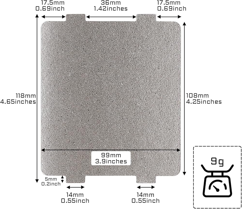المواد: مصنوعة من ورقة الميكا، سميكة للغاية ومتينة، وعادة ما توضع داخل التجويف على الجدار الأيمن، أو الجدار العلوي من تجويف الفرن، جزء بديل عملي وحقيقي للأصلي التالف أو القديم ويتم تطبيقه على تغطية الميكروويف.