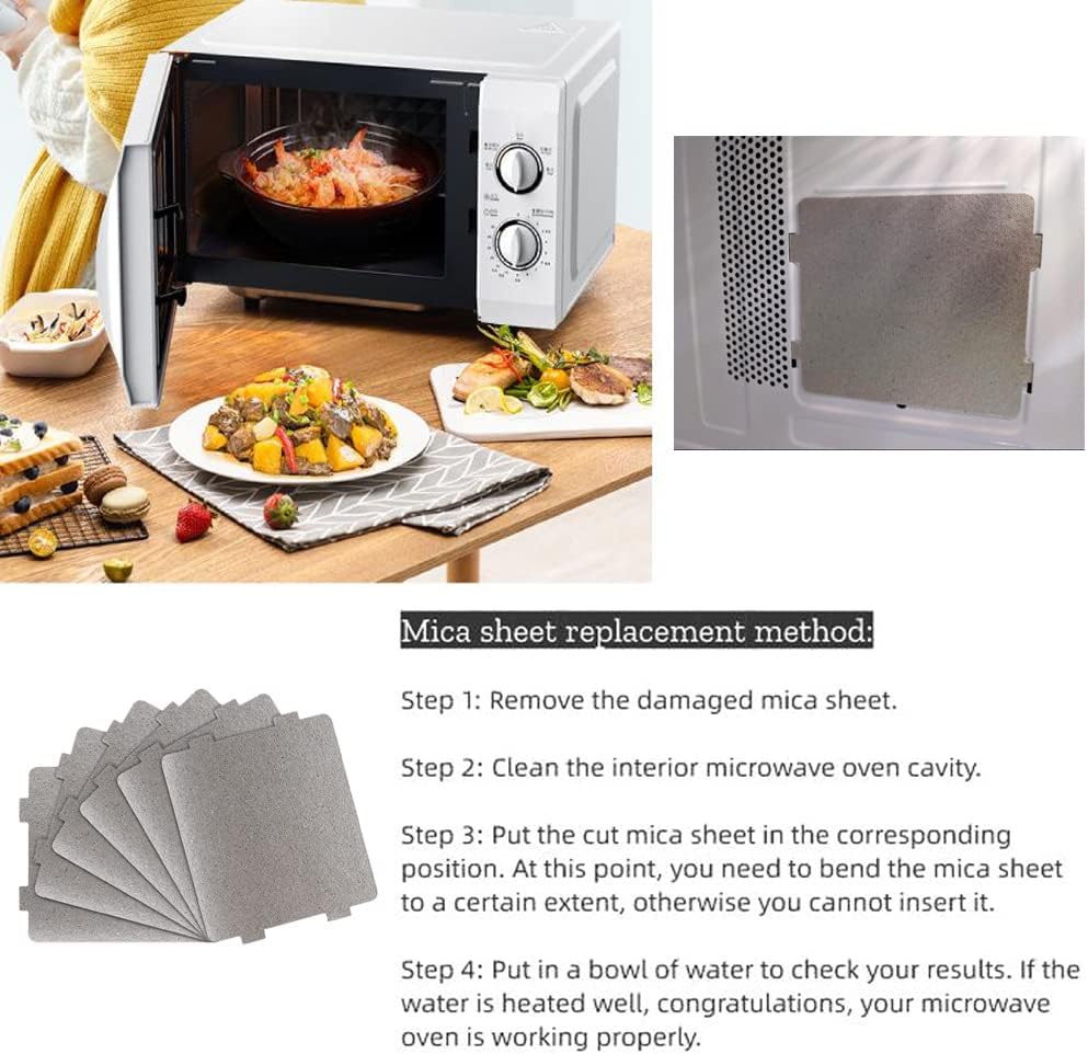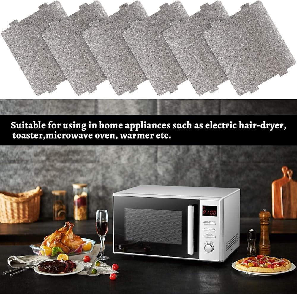 التطبيقات: تهدف أوراق أطباق الميكا هذه إلى إرسال الإشعاع من المغنيترون إلى غرفة الطهي، لمنع جسيمات الطعام والبخار والبخار من دخول المساحة خلف غرفة الطبخ حيث توجد المكونات الإلكترونية في الميكروويف لديك، وحماية فرن الميكروويف من الاحتراق ودوام عمر الميكروويف.