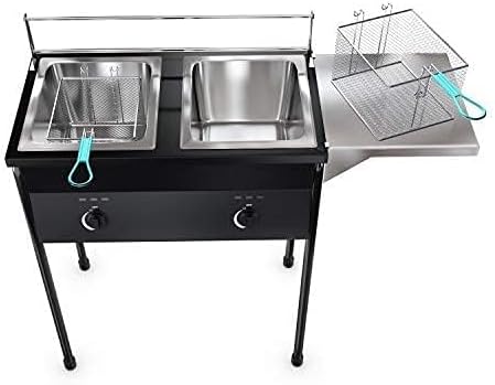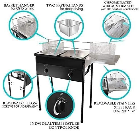• ✦Easy to move✦ Two fryer basks with come come with that not only enable safer تجنب injuries and carrying handles makes it easy to move this propane fryer with stands