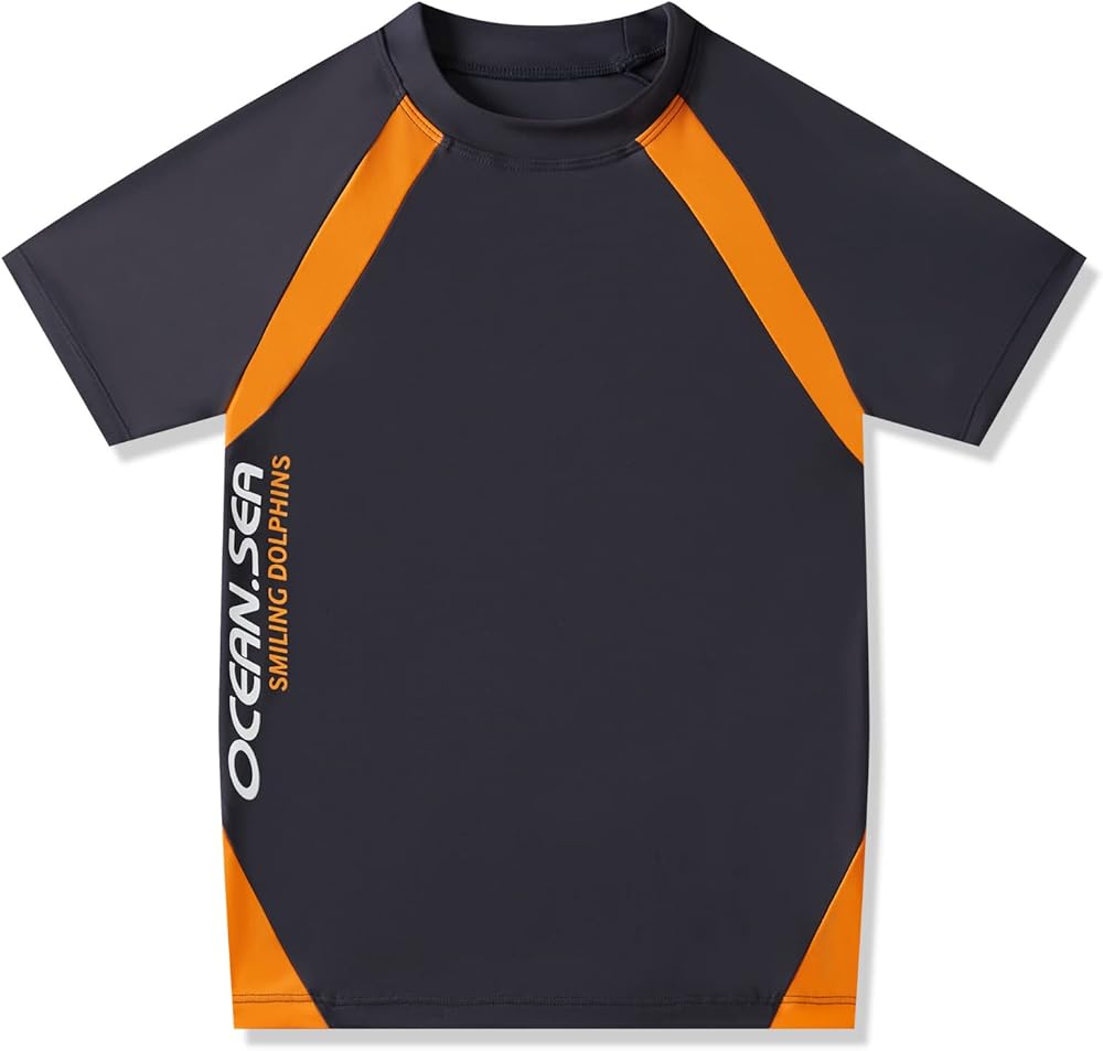ملابس سباحة واقية للأولاد: نسيج صديق للبشرة لهذا التيشيرت الواقي من الطفح الجلدي للأولاد مثالي لبشرة ابنك الحساسة؛ دعه يستمتع بالصيف دون القلق بشأن حروق الشمس مع قميص الحماية من الطفح الجلدي عالي الجودة؛ مثالية أثناء قضاء وقت ممتع في حمام السباحة أو الشاطئ