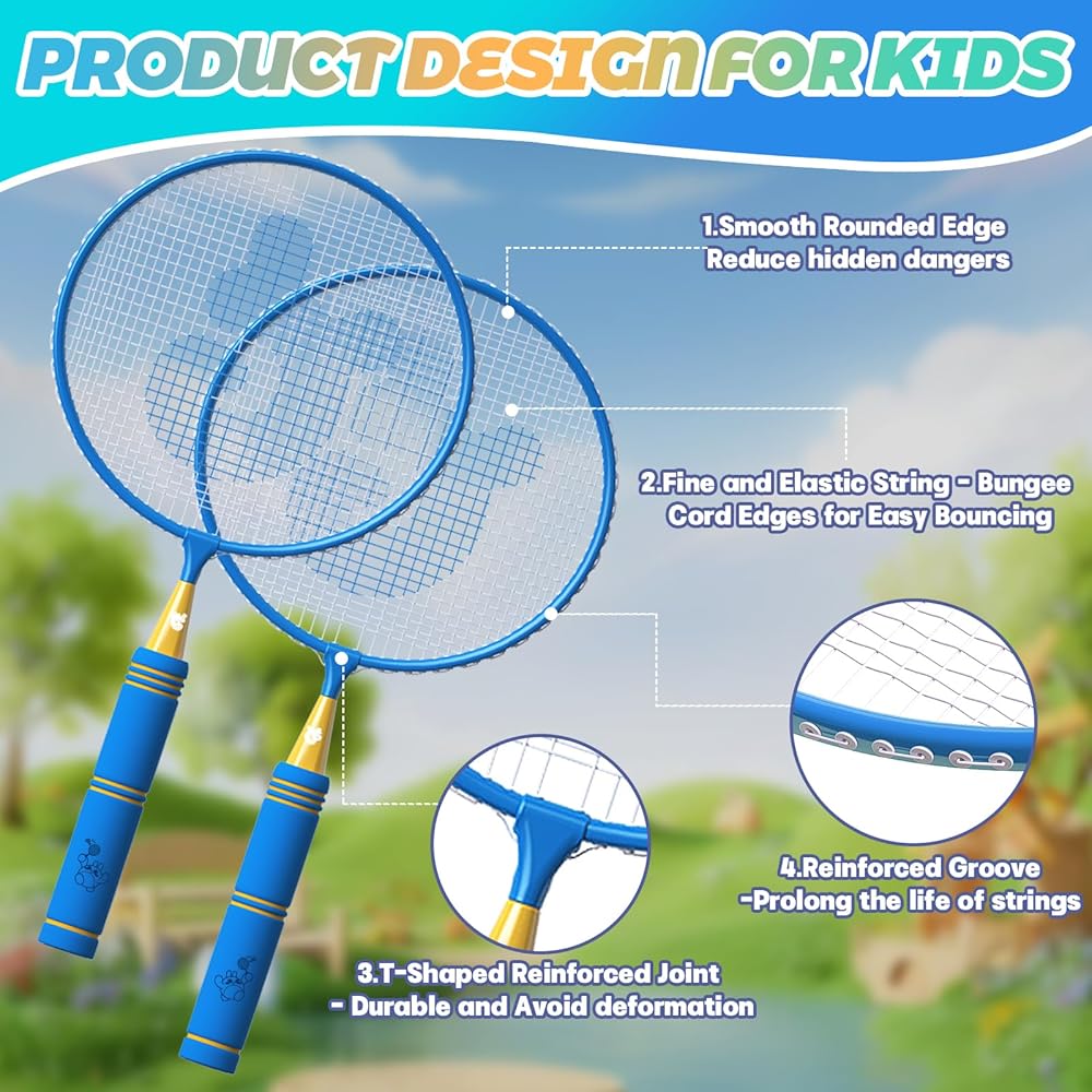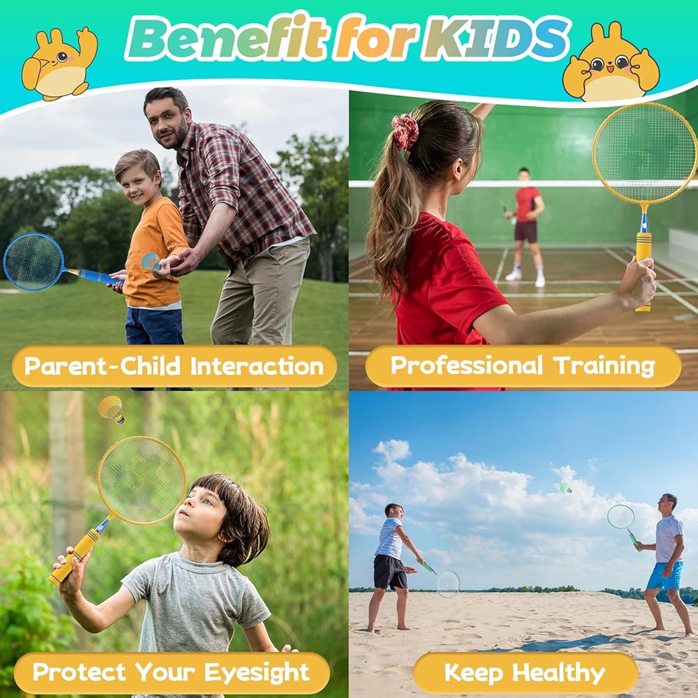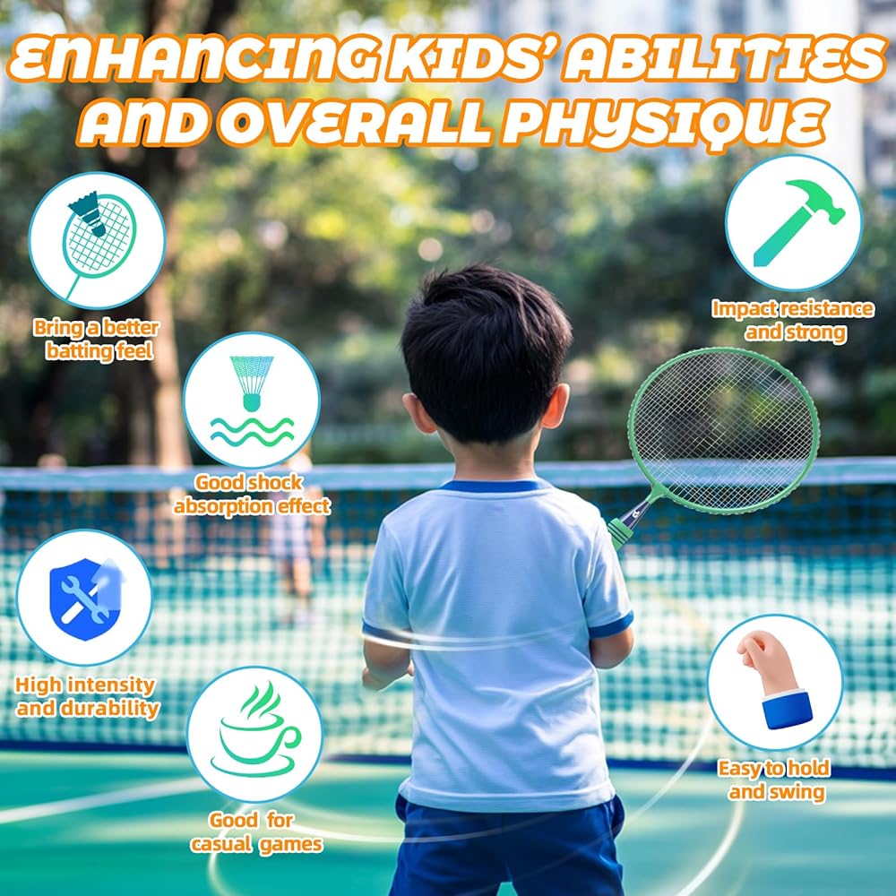 • يعزز اللياقة البدنية ونشاط الدماغ: شجع أطفالك على البقاء نشيطًا وبعيدًا عن الأجهزة الإلكترونية مع مجموعة مضارب كرة الريشة الخاصة بنا. لا تعمل هذه الرياضة على تحسين التوازن واللياقة البدنية فحسب، بل تحفز نشاط الدماغ أيضًا. إنها طريقة رائعة لتعزيز رفاهيتهم بشكل عام أثناء الاستمتاع