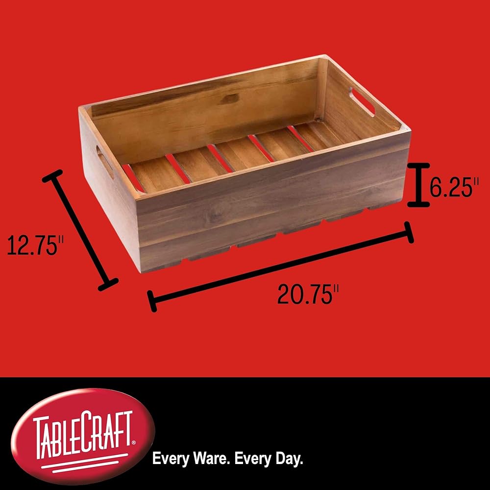 Presenting the Tablecraft range of market display essentials, meticulously designed for commercial use in bakeries, restaurants, wineries, eateries, and specialty stores. Our high-quality wooden crates for display are designed to pair with our food display risers, adding a rustic charm to commercial and even home settings. Not just a display pieces but a unique pieces that elevates your dessert table. An alternative use is for displaying a collection of treasures, storing craft or office supplies, or vending your baked goods, fruits, or prepacked food. The range includes Acacia Wood Display Crate, Black Painted or natural Wood Display Cratse, and Two-Tiered Crate Frame Riser. Each piece is ideal in substitute of wood crate stand, crate stand, or white wooden crates for a dessert table. Our wooden crates for display stands and crates for table display bring a rustic touch to any setting. The 3 tier market stand, homefavor fruit basket, and two-tier storage basket are perfect for breakfast buffets, grab-and-go stations, or merchandising. Features adjustable shelves for flat or angled display and a removable chalkboard panel that allows for a customizable presentation, making our products a versatile option as a produce stand, crate display stand, or buffet risers wood. Our wooden food risers, wooden table display, and produce table are perfect for showcasing your culinary creations. Also, they double up as fruit racks for countertop, apple storage rack, or produce tier. Tablecraft's white wash crate display is a perfect blend of style and functionality. Our products provide a cost-effective solution for those looking for cheap wooden crates without compromising on quality. Tablecraft, beautifying your food presentations.