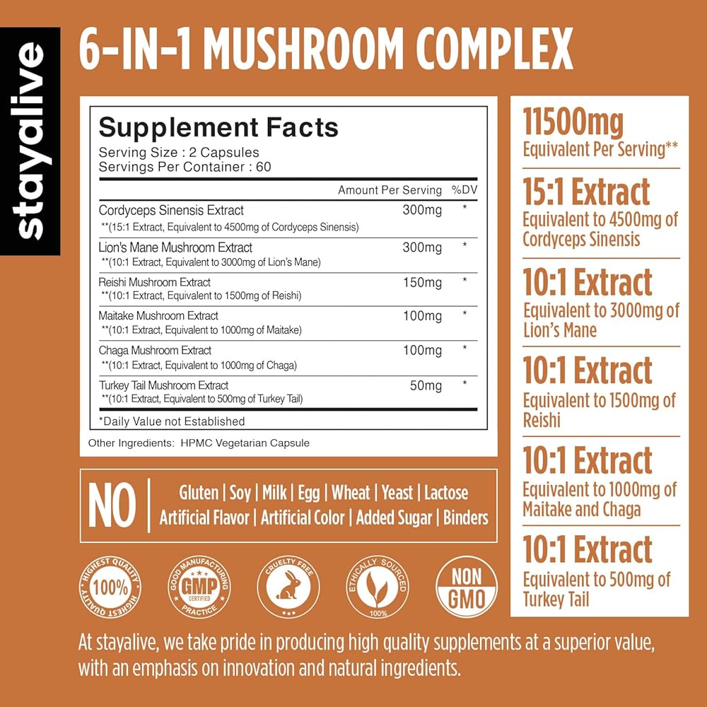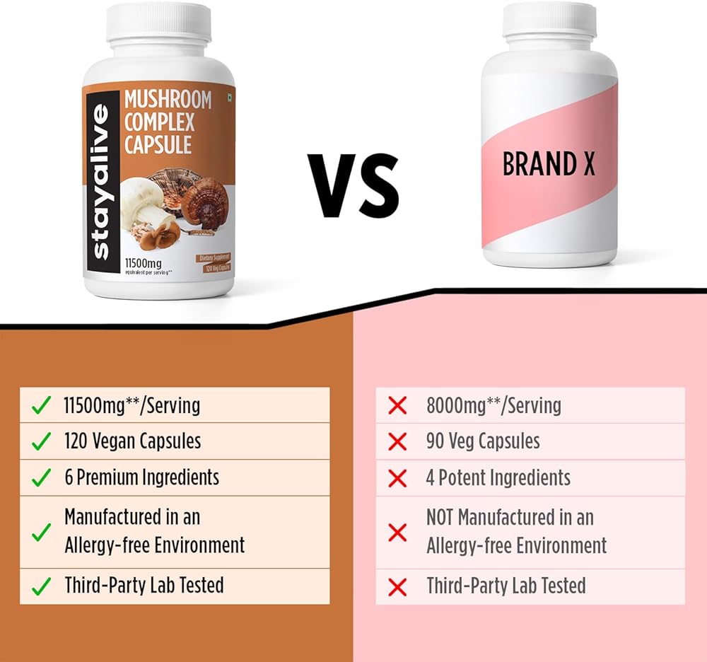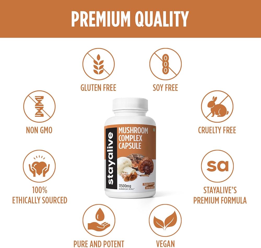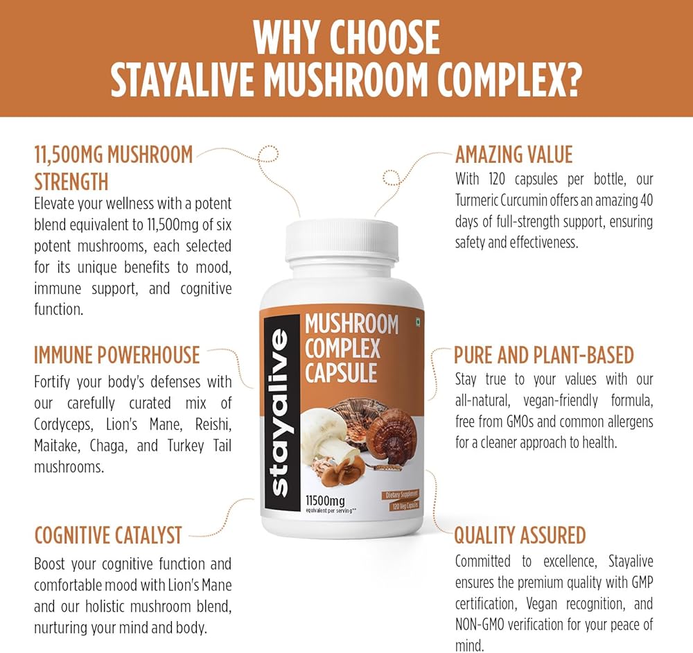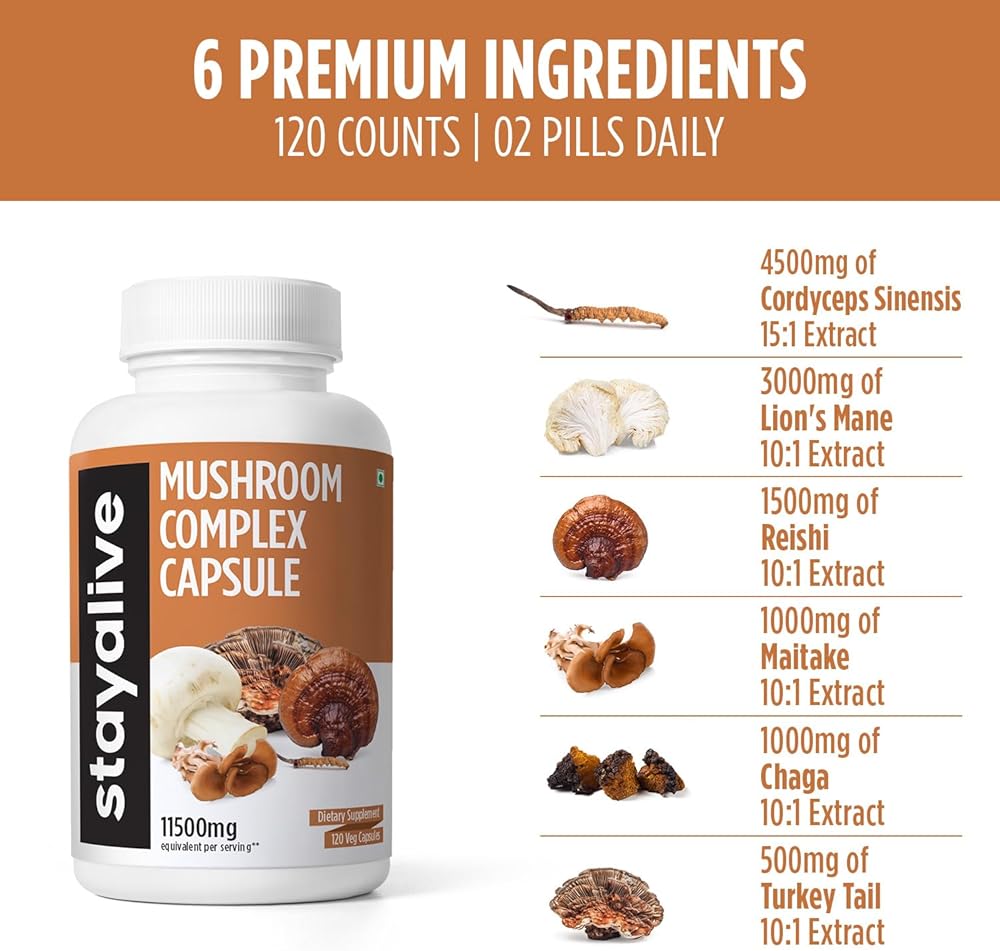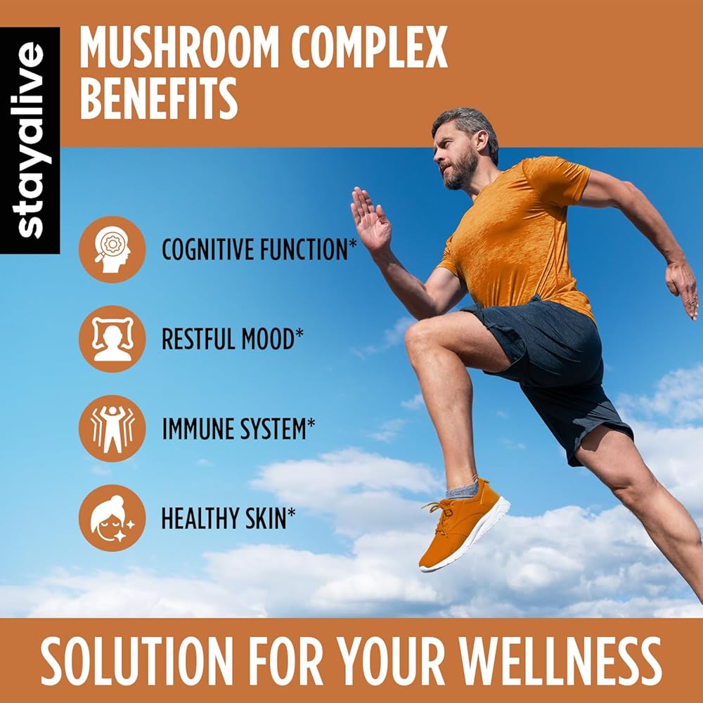 🍄 التغني الصحي الملهم: في StayAlive، نحن نؤمن بالنهج الشامل للعافية. من خلال الجمع بين نظام غذائي متوازن وممارسة التمارين الرياضية بانتظام ونمط حياة مدروس مع المكملات الغذائية الطبيعية مثل كبسولات Mushroom Complex، يمكنك دعم صحتك وحيويتك بشكل عام. دعونا نبدأ هذه الرحلة نحو الحيوية والمرونة معًا، خيارًا صحيًا واحدًا في كل مرة.