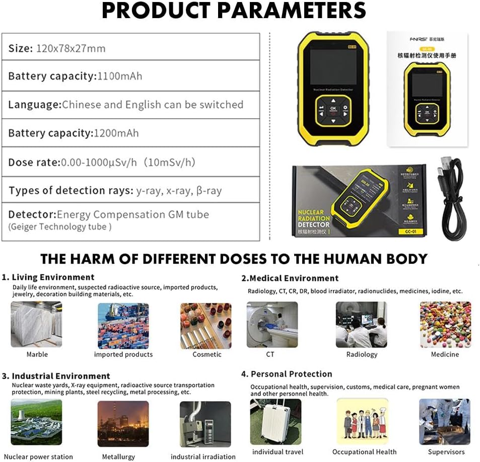 التطبيق: يمكن استخدام أجهزة الكشف عن الإشعاع على نطاق واسع في الفيزياء النووية والرصد البيئي والمجالات الصناعية.