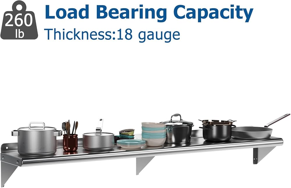 • Durable Construction: Fabricated from sturdy 18-gauge stainless steel, this wall mount shelf boasts lasting quality and resilience.