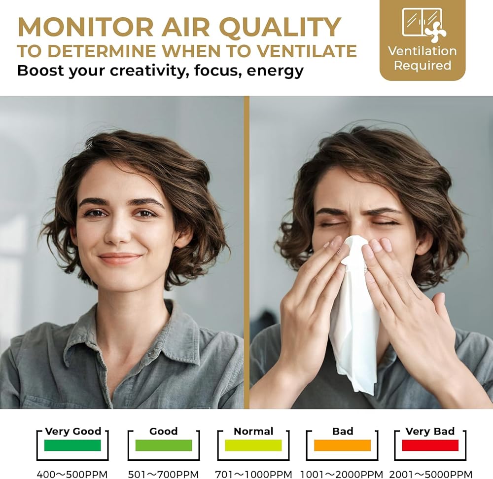 • التهوية مطلوبة - مراقبة جودة الهواء، لتحديد وقت التهوية، وتعزيز إبداعك وتركيزك وطاقتك.