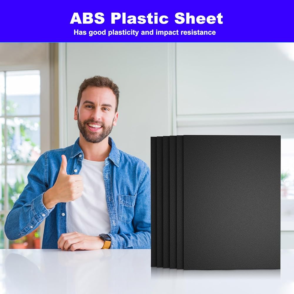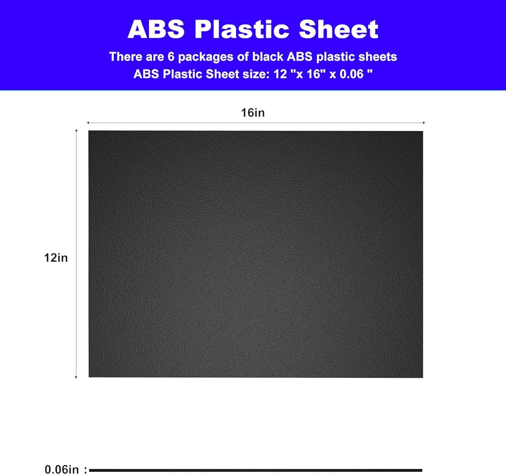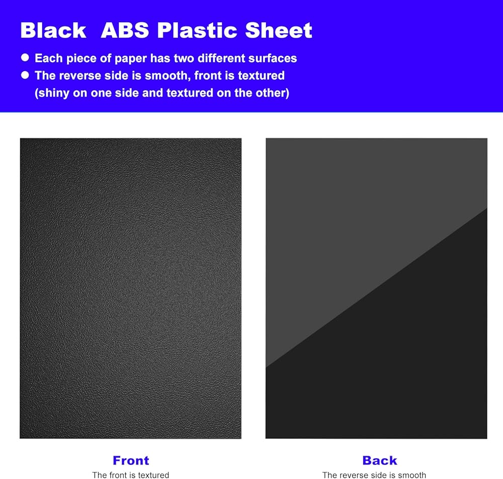 【ورقة بلاستيكية ABS】العبوة، هناك 6 عبوات من صفائح بلاستيك ABS السوداء، مقاس ورقة بلاستيك ABS: 12 بوصة × 16 بوصة × 0.06 بوصة، كل ورقة لها سطحين مختلفين، غير لامع وغير لامع (لامع على جانب واحد ومزخرف على الآخر) وهي مناسبة جدًا لمشاريع DIY.