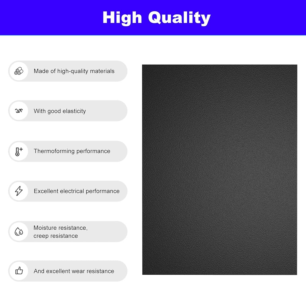 【جودة عالية】لوح بلاستيك ABS أسود مقاس 12 بوصة × 16 بوصة مصنوع من مواد عالية الجودة، مع مرونة جيدة، وأداء تشكيل حراري، وأداء كهربائي ممتاز، ومقاومة للرطوبة، ومقاومة الزحف، ومقاومة ممتازة للتآكل.