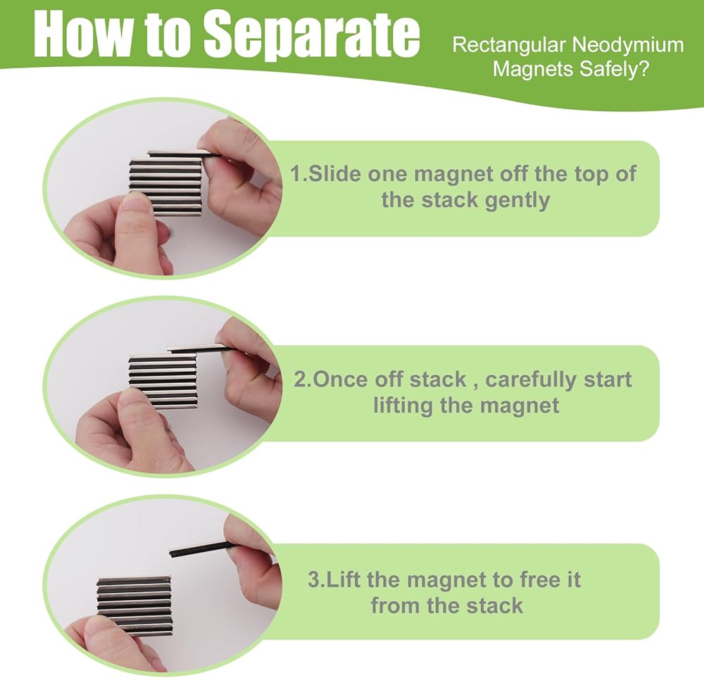 DO NOT attempt to pull, lift, or pry any magnet off the stack before sliding it to the side.