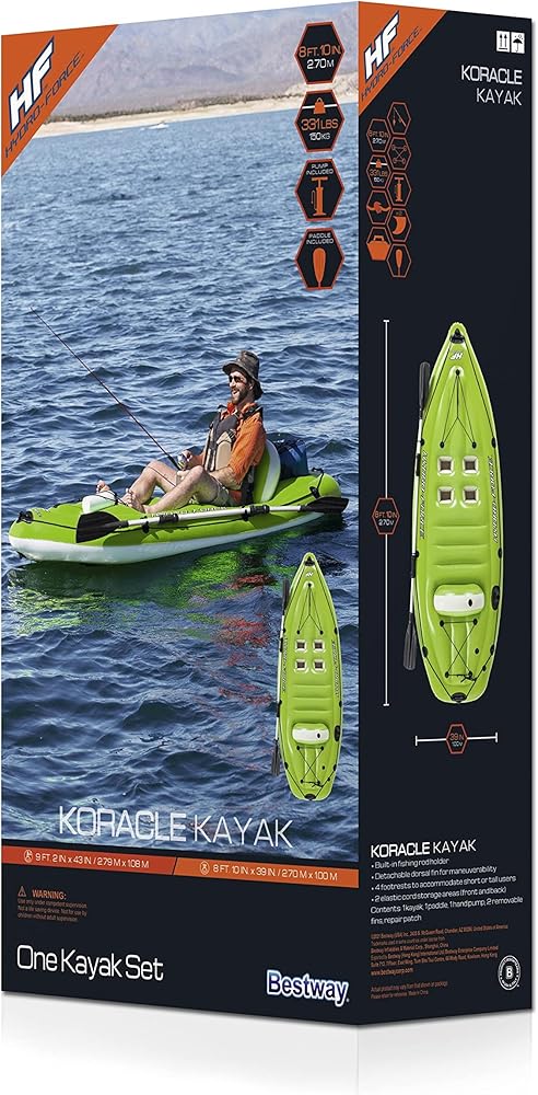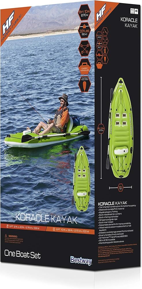 مجموعة قوارب الكاياك القابلة للنفخ Hydro-Force Koracle من بيست واي، تتضمن مجدافًا مزدوج الجوانب، ومشابك مجذاف مدمجة، وحوامل صنارة الصيد، وحجيرات تخزين، قوارب كاياك مريحة ومحمولة مع مضخة يدوية، الموديل: 65097E