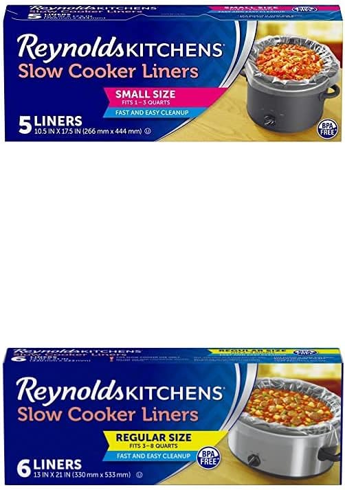 بطانات الطبخ البطيئة - تحتوي هذه العبوة على خمس بطانات للطهي البطيء من رينولدز كيتشنز، يبلغ قياس كل منها 10.5 × 17.5 بوصة لتناسب أجهزة الطبخ البطيئة المستديرة بسعة 1 إلى 3 لتر.