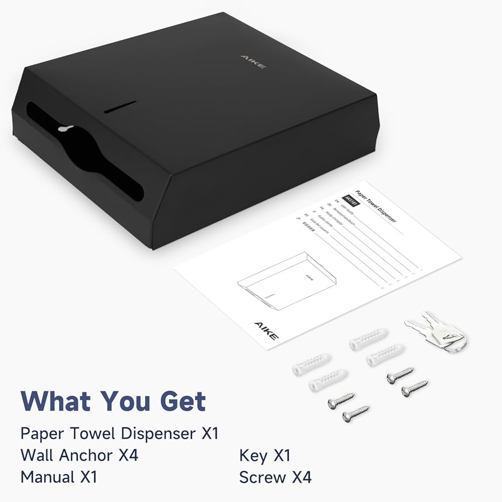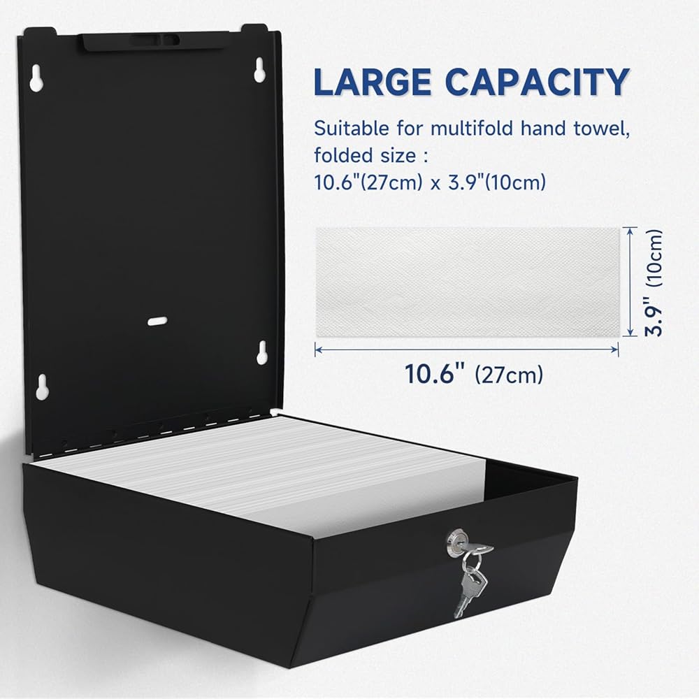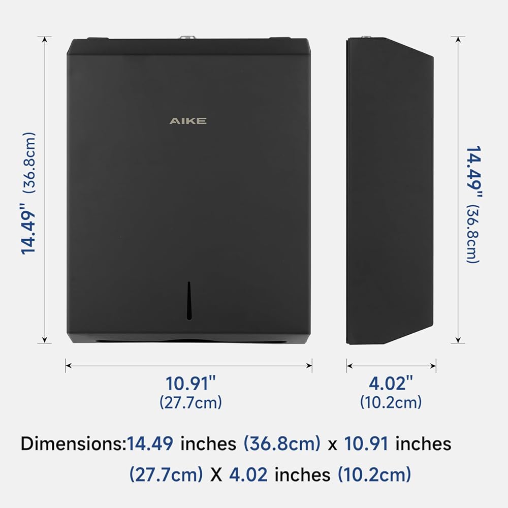 AIKE 400 ورقة متعددة الطيات من الفولاذ المقاوم للصدأ التجاري على الحائط موزع مناشف ورقية مع قفل سعة كبيرة أسود AK5181 (حجم مطوي 10.6 بوصة × 3.9 بوصة أو أصغر)