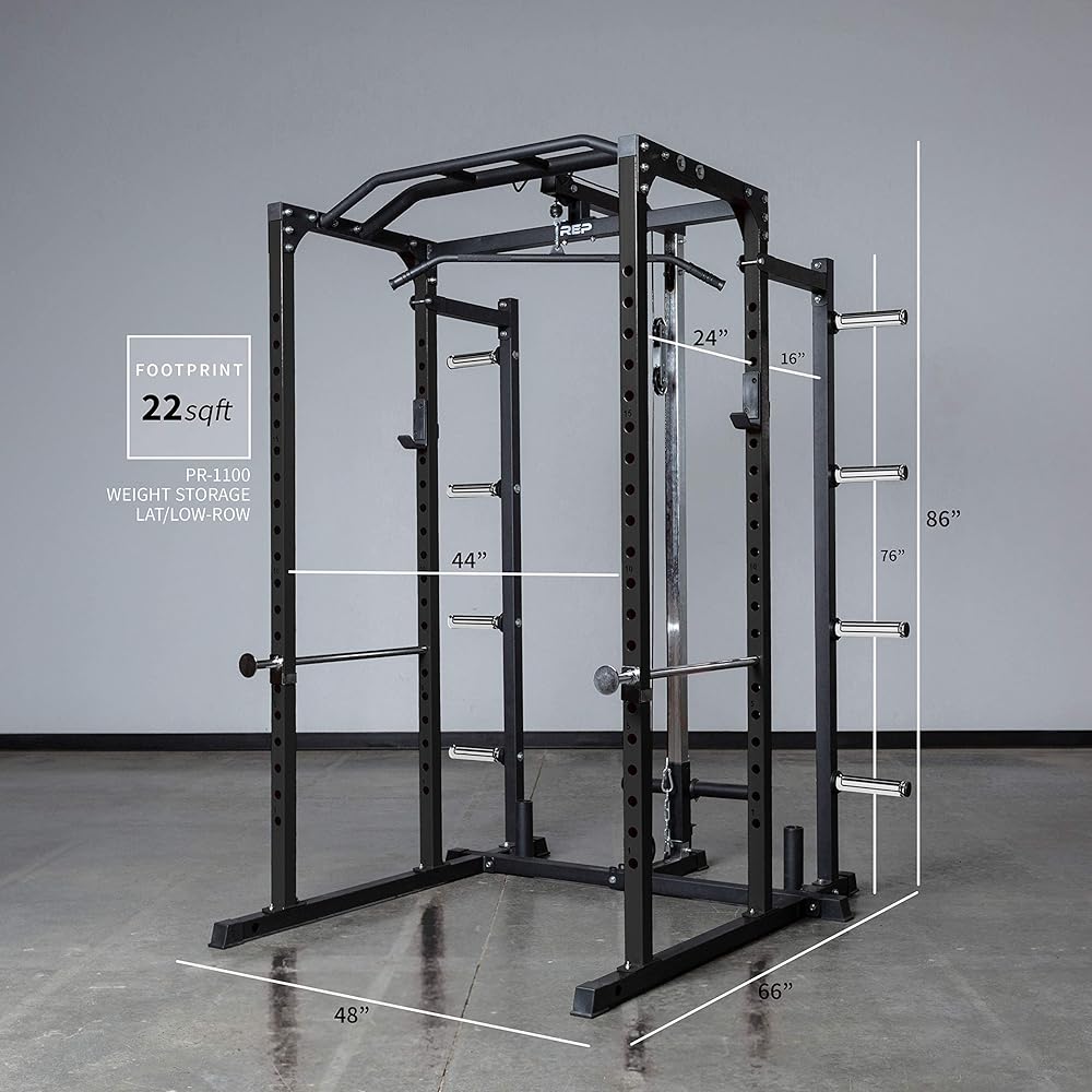 مصمم لصالات الألعاب الرياضية المنزلية: بارتفاع إجمالي يبلغ 84 بوصة فقط، يمنحك PR-1100 أقصى قدر من الوظائف في عبوة تناسب معظم مساحات صالة الألعاب الرياضية المنزلية. يمكنك الآن ممارسة تمرين القرفصاء والضغط وأداء المئات من تمارين القوة الأخرى في منزلك بأمان وفعالية. الأبعاد: 84 بوصة طول × 48 بوصة عرض × 47.5 بوصة عمق (84 بوصة أعلى شريط السحب، عند تركيبه كما هو موضح في الصور، الجزء العلوي من القوائم هو 82 بوصة إذا كنت تفضل تركيب شريط السحب لأعلى تحت). أبعاد القفص الداخلي: 44 بوصة عرض × 45.5 بوصة عمق.