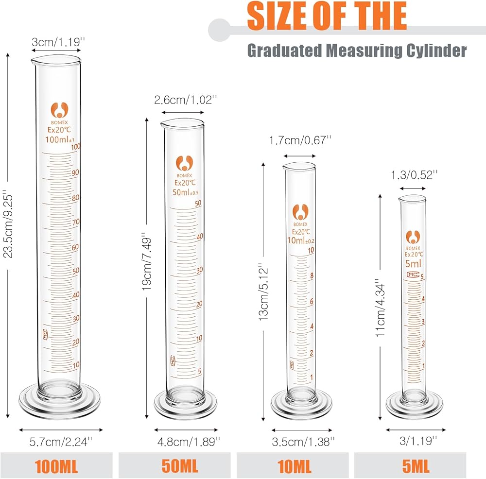 The glass beakers and measuring cylinders have different sizes for you to choose, so you can choose the appropriate size to use according to your different needs, and the rich sizes can meet most of your experimental needs.