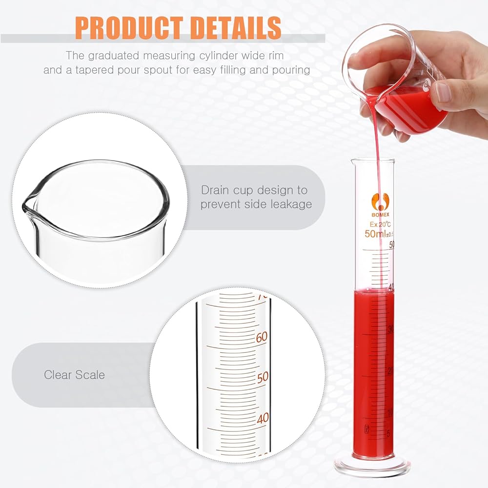 The beaker is suitable for mixing heated liquids, and the scale is clear and easy to read. And the graduated measuring cylinder wide rim and a tapered pour spout for easy filling and pouring, providing more convenience for you to do experiment.