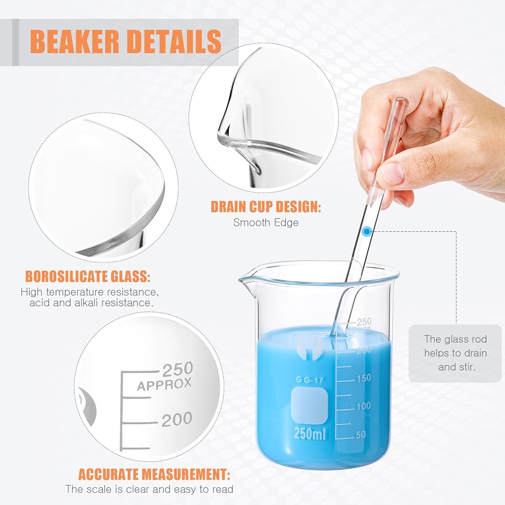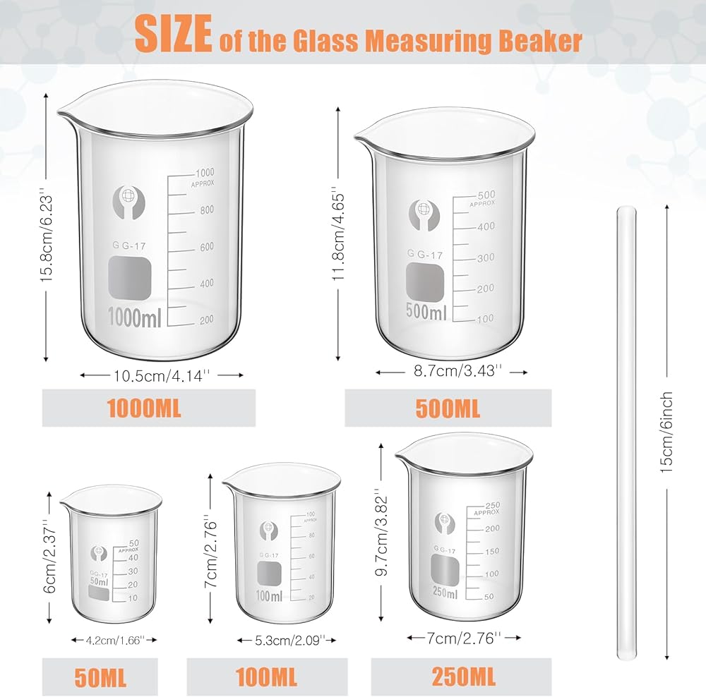 • Wide application: this measuring glass beaker set has a wide range of sizes, easy to clean, nice gift for experimenters, also suitable for school projects, home labs or science-themed birthday parties