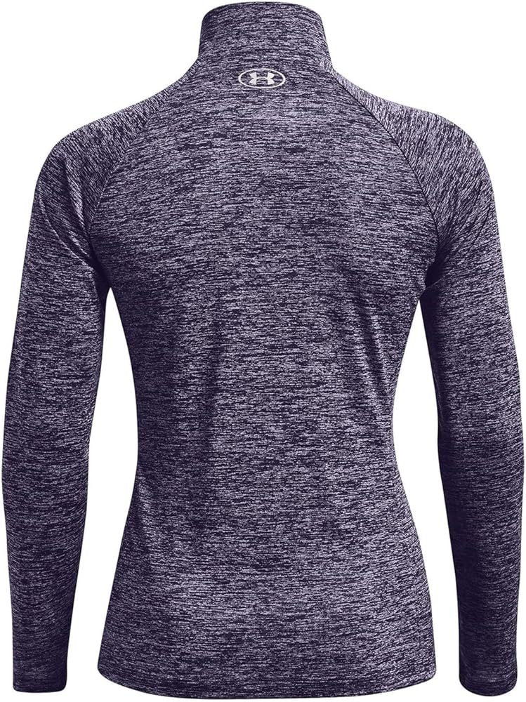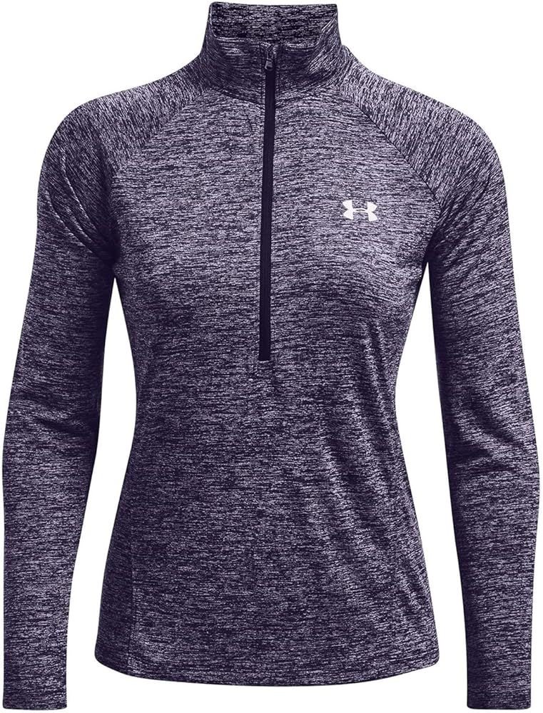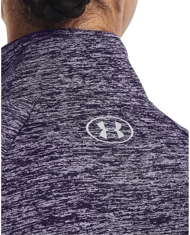 بلوفر نسائي من Under Armour Standard Tech Twist ½ سحاب وأكمام طويلة، أرجواني Switch (571)/فضي معدني، X-Small