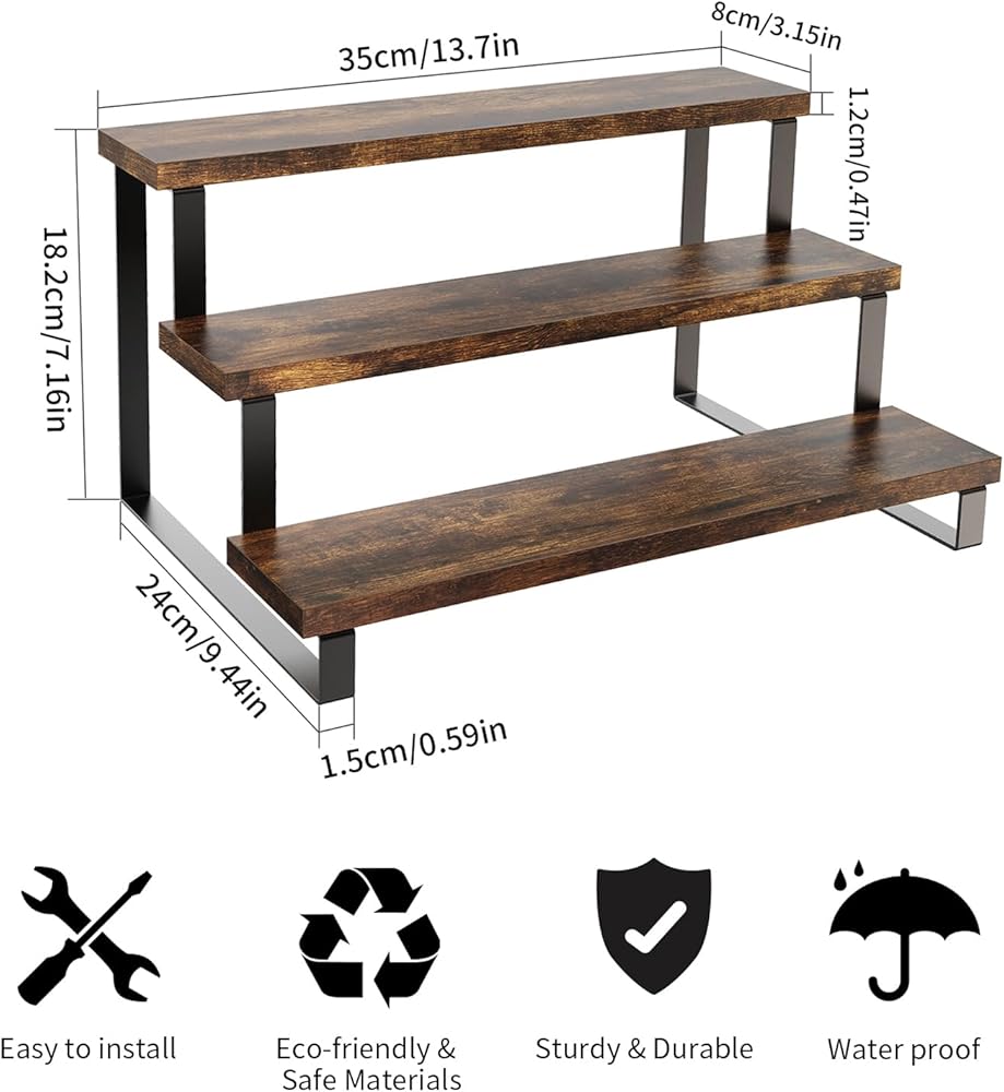 تصميم متعدد الطبقات: بفضل تصميمه المتدرج الأوسع والأكثر سمكًا، يعمل حامل العرض هذا على زيادة مساحة الطاولة الخاصة بك بكفاءة. إنها مثالية لعرض تماثيل الألعاب في الخزانات، أو عرض حلويات الحفلات، أو تنظيم مستحضرات التجميل على خزانة ملابسك. تخلق الطبقات المرتفعة نقطة محورية جذابة بصريًا، وتلفت الانتباه إلى العناصر الخاصة بك وتعزز عرضها.