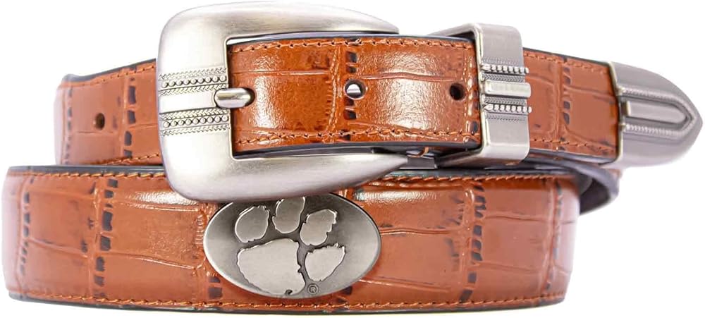 Clemson Tigers Genuine leather Concho black belt with 3 gun metal buckle set and matching team emblems. Perfect for a dressy gameday event or golf outing. Measures 44". Made in U.S.A.