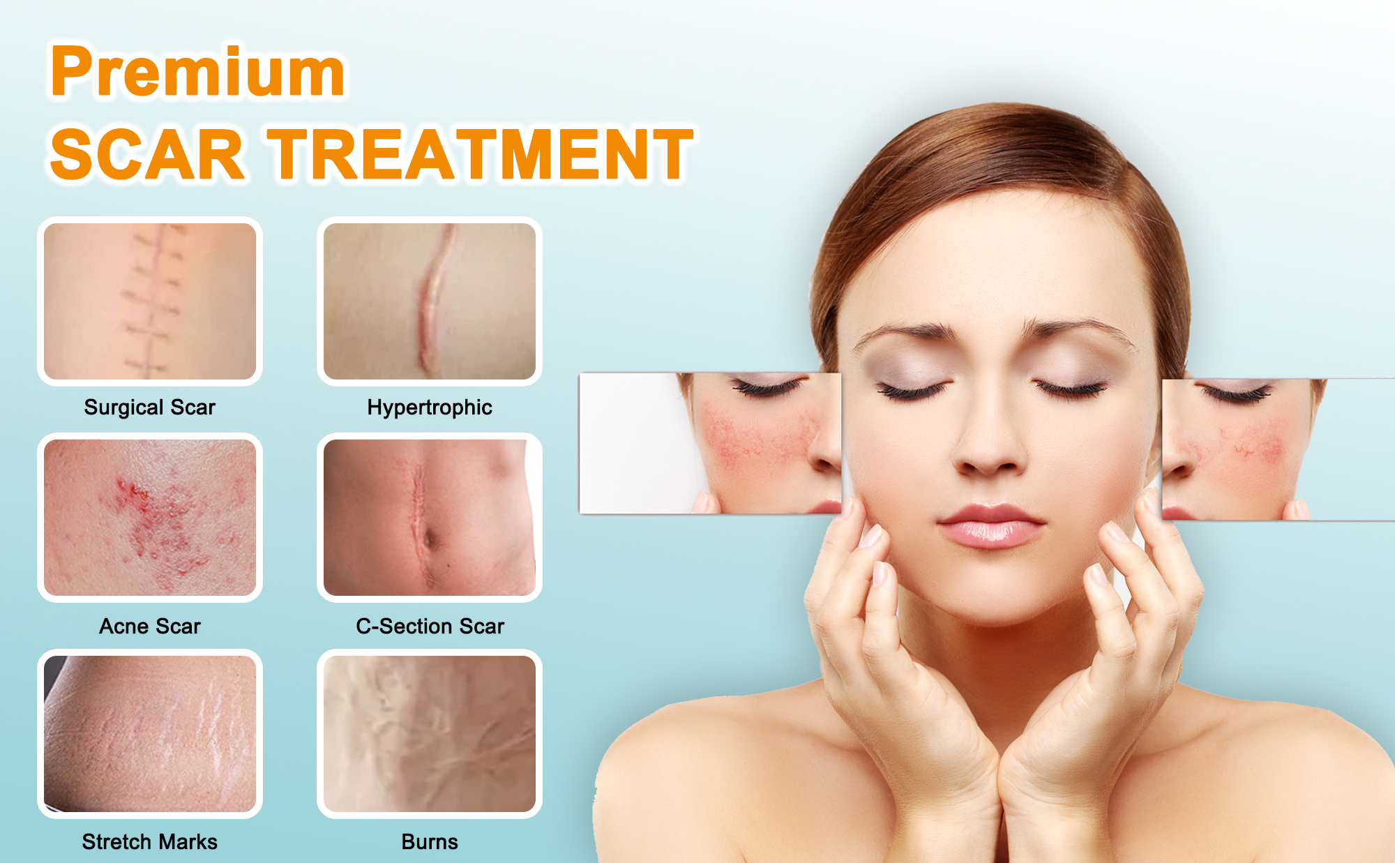 تحسين فعال للندبة: نظف منطقة الندبة وجففها قبل الاستخدام. الاستخدام المستمر من أربعة إلى ستة أسابيع للندبة الجديدة ومن شهرين إلى أربعة أشهر للندبة القديمة. لا حاجة لعملية جراحية. تعمل هذه الخلايا على تعزيز تكوين أنسجة الجلد الضامة وإصلاح الكولاجين في المناطق المتضررة، وتحسين الترطيب عن طريق الحفاظ على الجلد مشدودًا ومغطى، وتعزيز الشفاء الطبيعي من خلال إنتاج الجسم للخلايا الليفية.