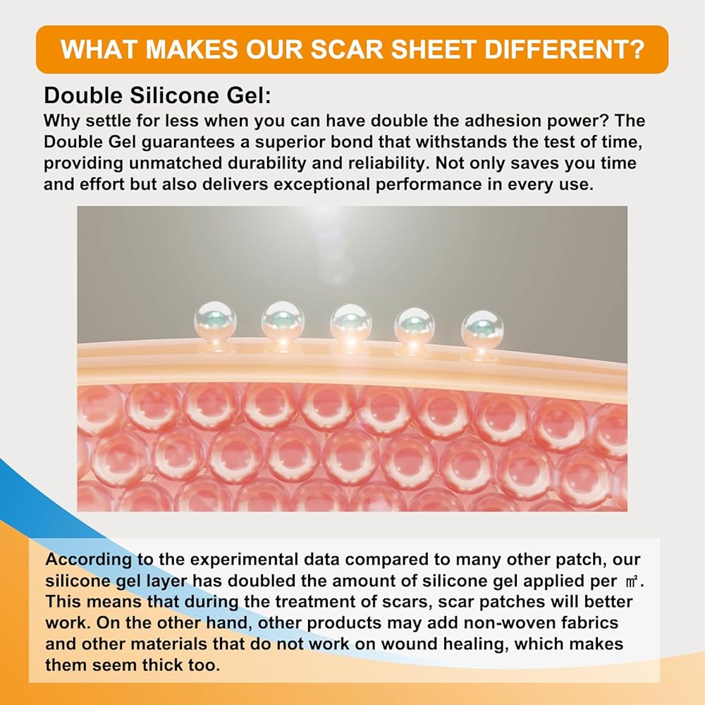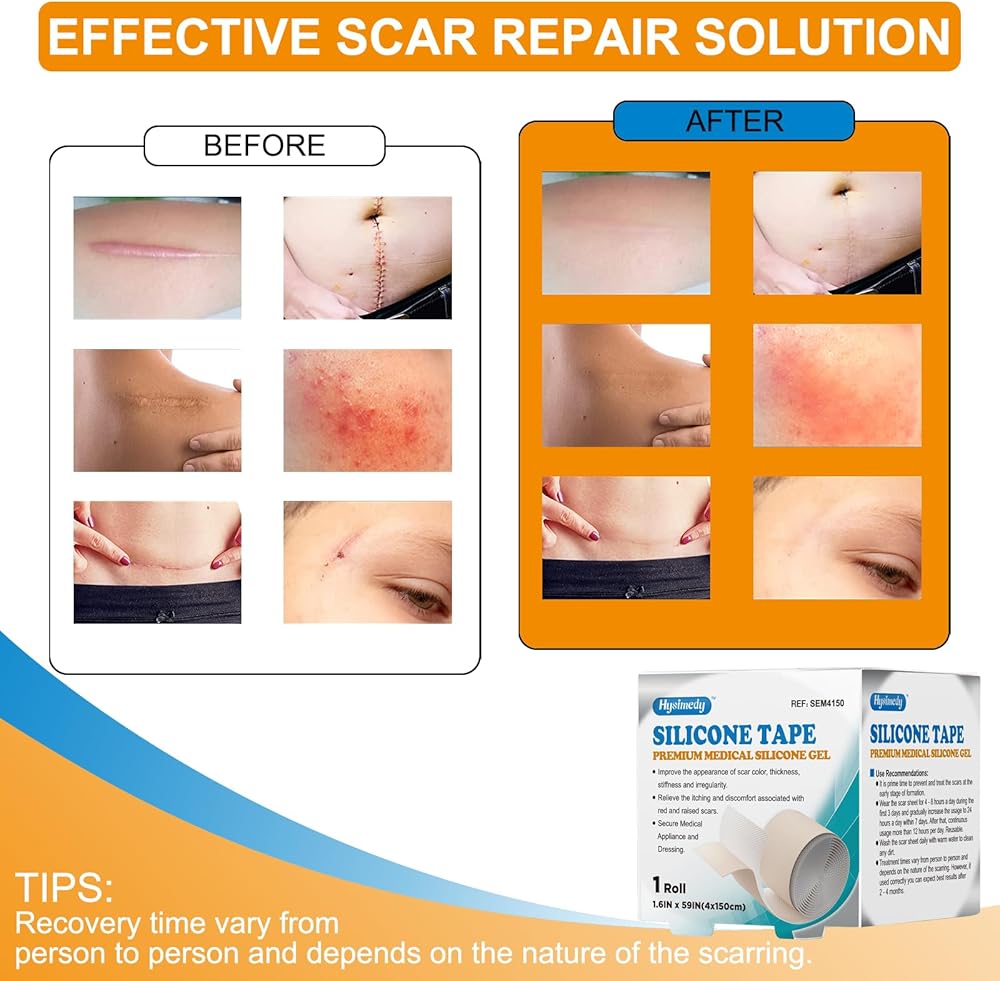 مناسبة لأنواع مختلفة من الندبات: تعتبر ورقة الندبات المصنوعة من السيليكون من الدرجة الطبية من Hysimedy مثالية لتقليل ظهور الندبات الجراحية، والقسم القيصري، والجُدرة، وعلامات التمدد، والحروق وأنواع أخرى من الندبات. فقط ضعيه على منطقة الندبة الجديدة أو القديمة، وسوف يخفف ويمنع الندبات المتضخمة ويحسن لون الندبة وحجمها وملمسها في غضون أسابيع قليلة.
