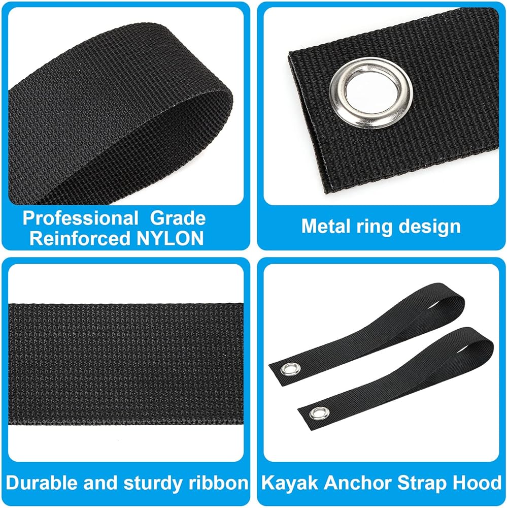 Our anchor straps are made of high-strength nylon and are easy to install. They help stabilize the bow and stern of your kayak, canoe, surfboard, or paddle board on the roof rack.