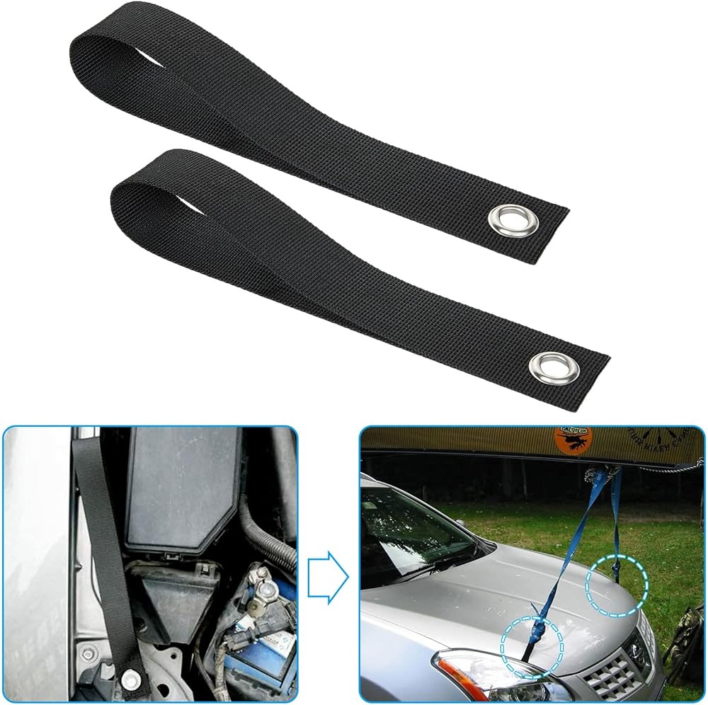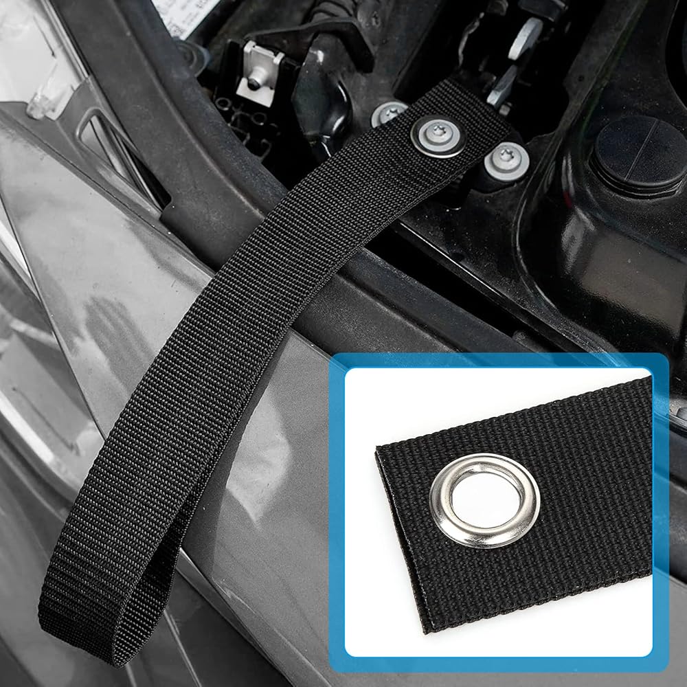 【Easy to install】Tie down loop strap is very easy to Install. Firstly, remove the bolts of the hood, and then put in the strp metal ring, finally, tighten it with the removed bolts