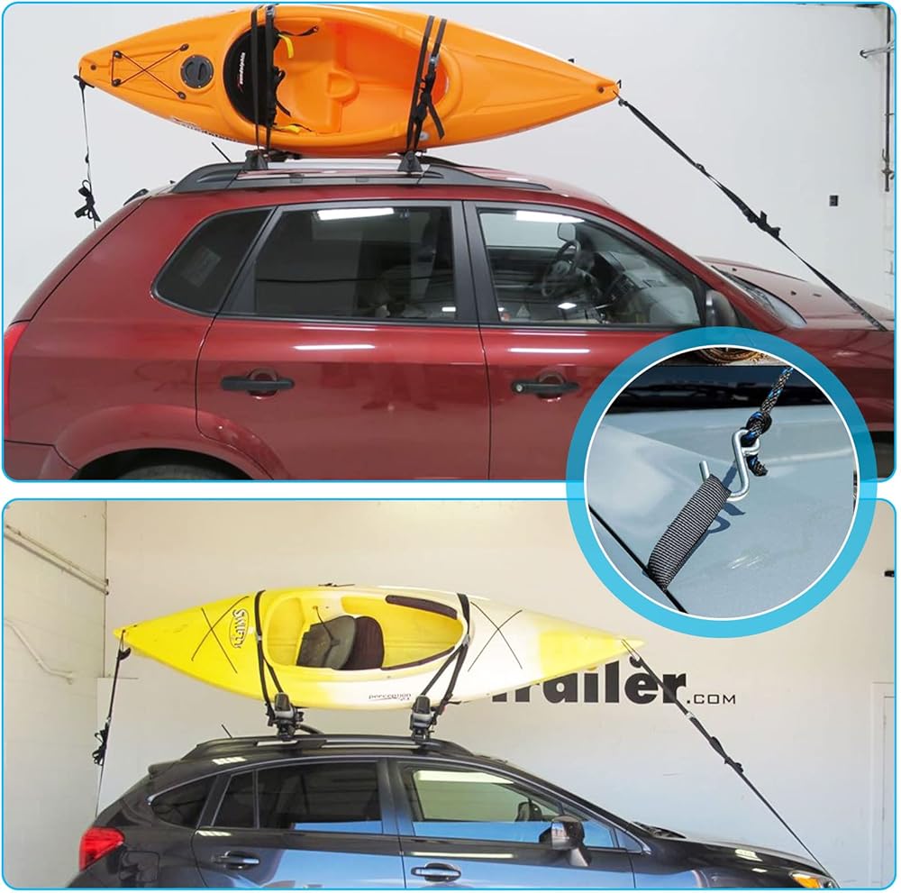 【Safest Transport Available】The Hood Loop Strap offers a better and a safer way to tie your canoe & kayak down without interfering any components of your vehicle