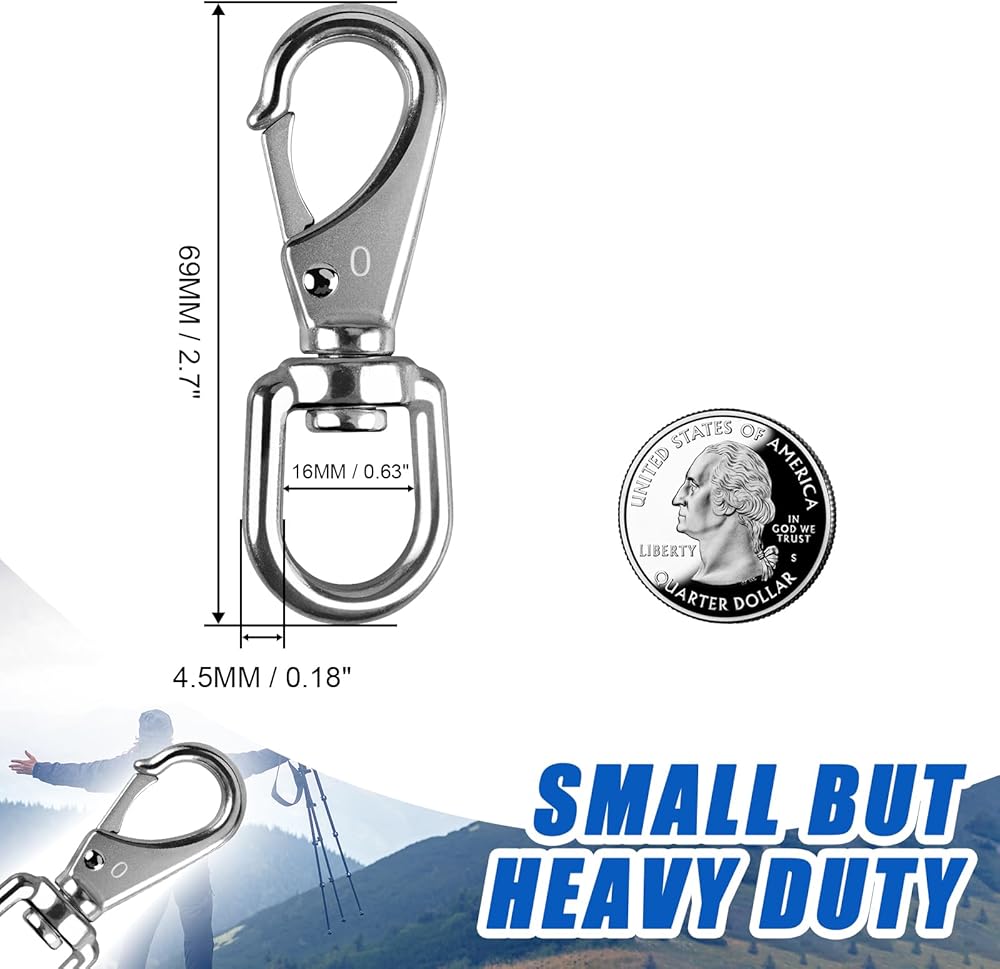 ✔ مشابك عين دوارة متعددة الأغراض - تم تصميم هذه المشابك الدوارة شديدة التحمل لمعظم الأماكن الداخلية والخارجية، مثل حبال مرساة القوارب، وحبال سارية العلم، وسلاسل الكلاب، والنباتات المعلقة، ومشابك الغطس، والكابلات، والأراجيح، وما إلى ذلك. يمكنك أيضًا استخدامها كمفتاح قم بسلسلة أو قم بتعليقها على بنطالك! إنها الحجم المثالي لأي وظيفة