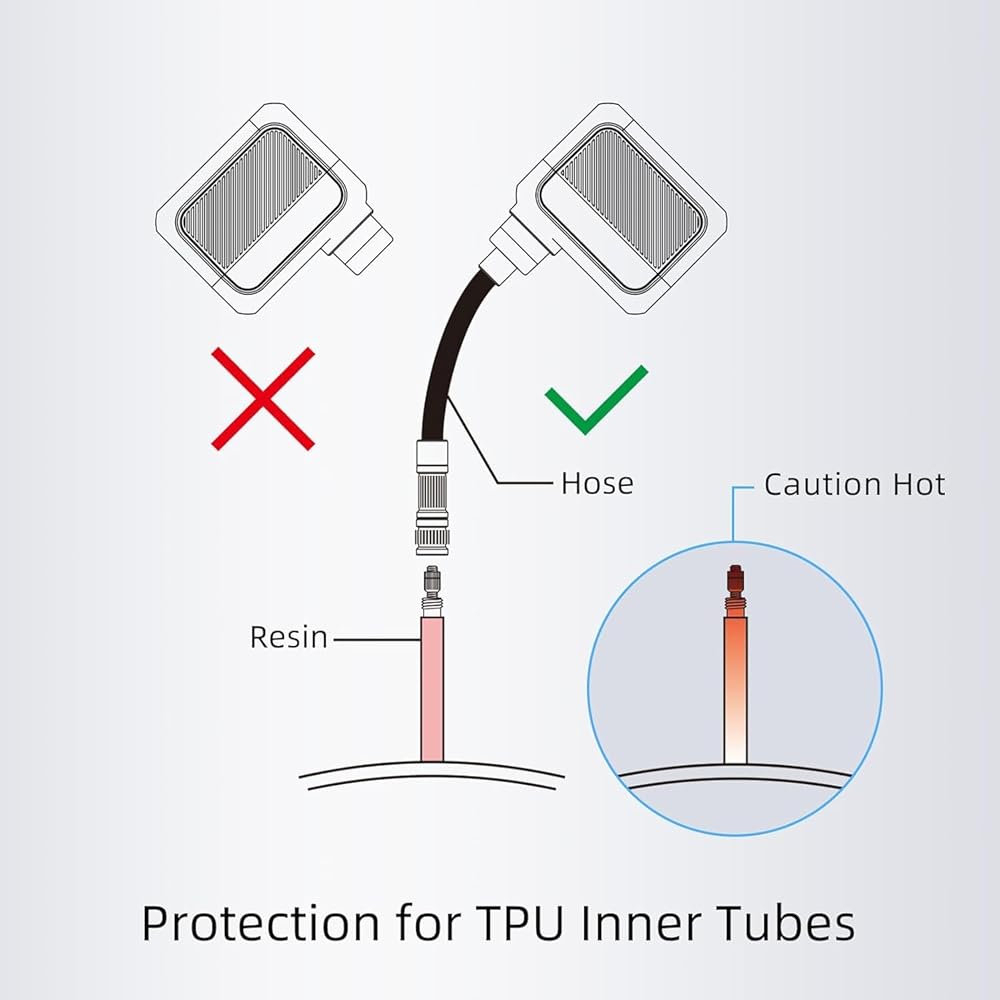 • 【Protect TPU Inner Tubes】For TPU inner tubes with resin valves, be sure to connect them with an extension air hose, or the valves may melt due to overheating