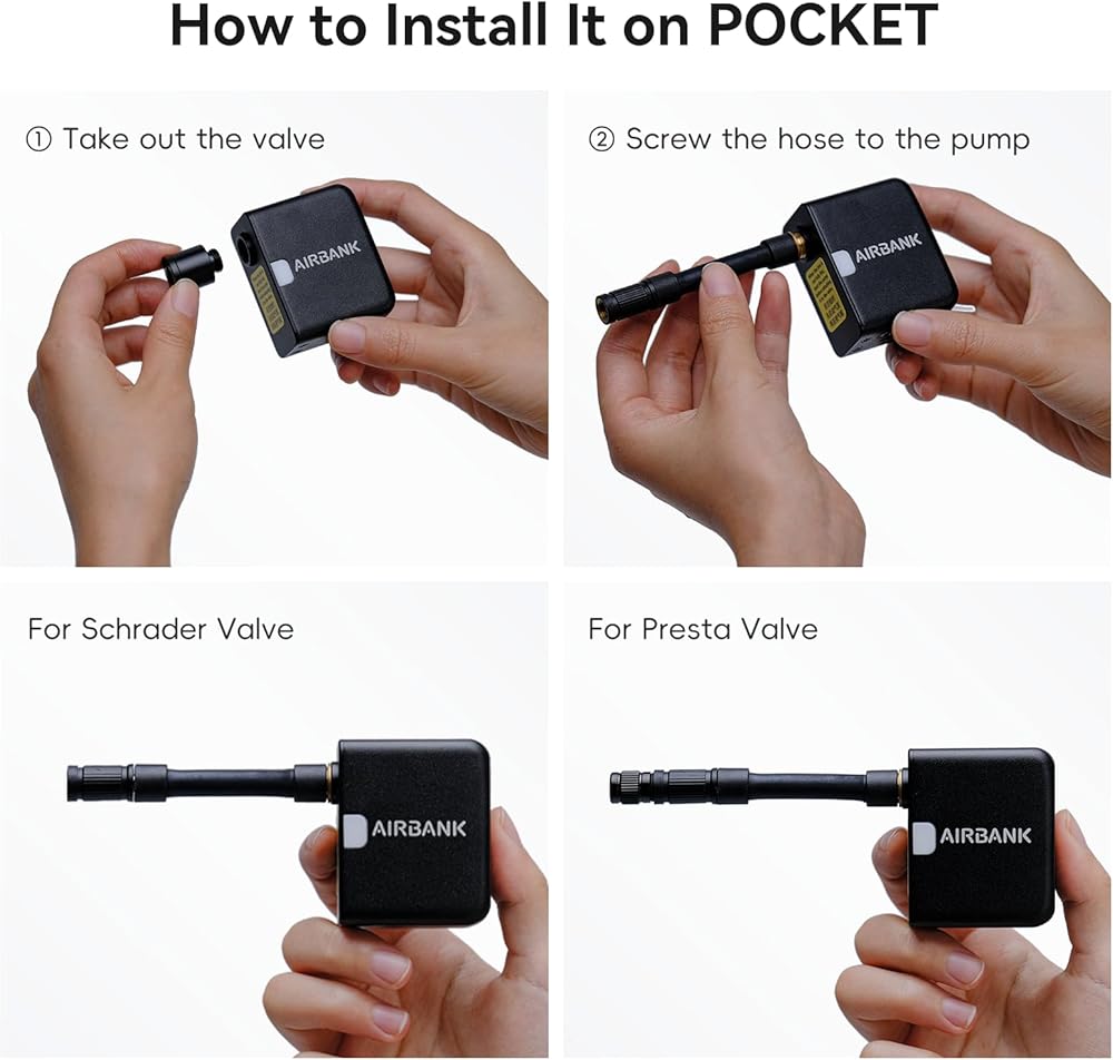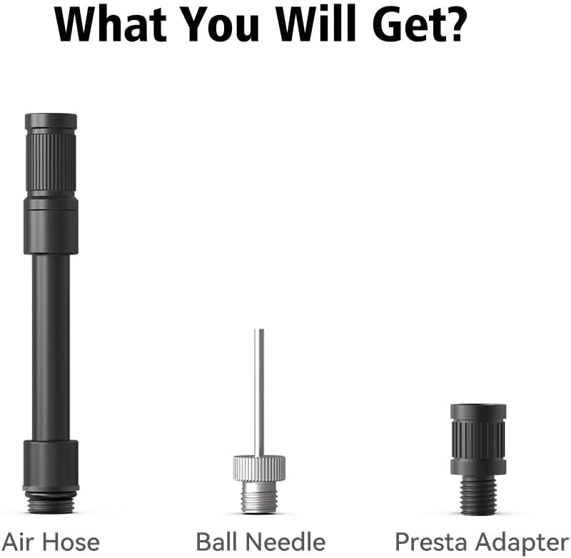 • 【How to Use】Remove the cap on the inflator, screw the hose onto the inflator. If your tire is presta valve, screw the presta connector to the hose