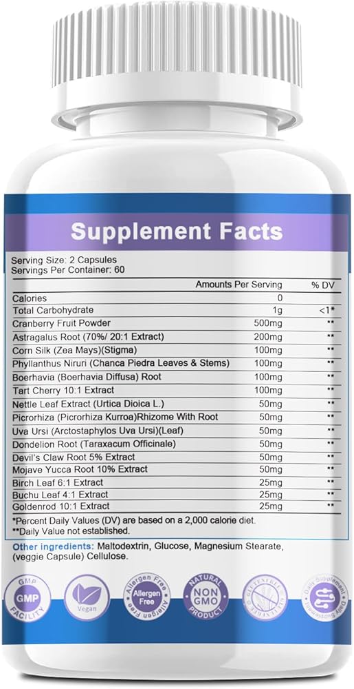 • مكمل التوت البري: تحتوي مكملات الكلى لدينا على 500 مجم من التوت البري لكل وجبة، وهي مكونات تساعد في دعم صحة الكلى ودعم المسالك البولية.* تم تصميم كبسولات التوت البري لدينا لتزويدك بجميع العناصر الغذائية الأساسية التي تحتاجها للحفاظ على صحة الكلى الطبيعية.