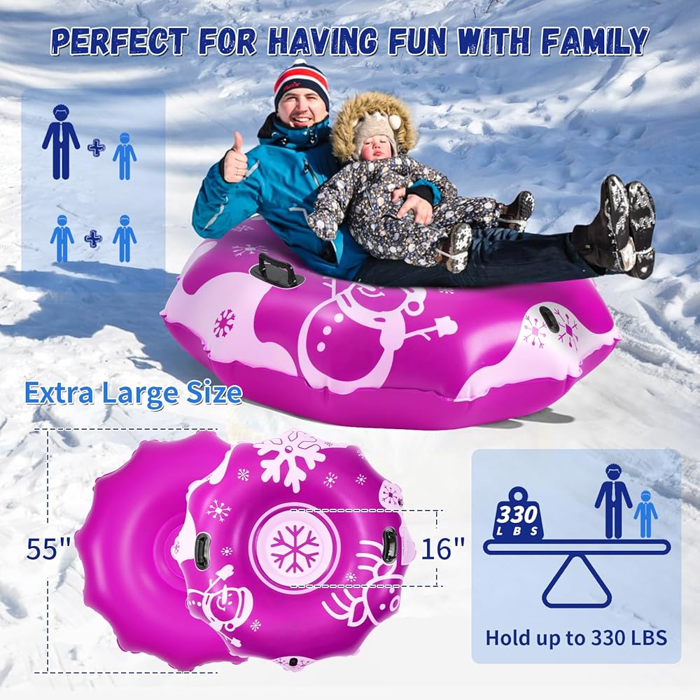 【زلاجة ثلجية كبيرة جدًا مقاس 55 بوصة】زلاجة الثلج COVACURE كبيرة جدًا، بقياس 55 بوصة، مما يزيد من مساحة الاتصال بالأرض ويمنع الانقلاب بسرعات عالية. بفضل تصميم المقعد المريح مقاس 16 بوصة، يمكنك الاستمتاع بتجربة تزلج أفضل أثناء ضمان السلامة والاستقرار يمكنك قضاء وقت ممتع في التزلج على أنبوب الثلج هذا الشتاء.