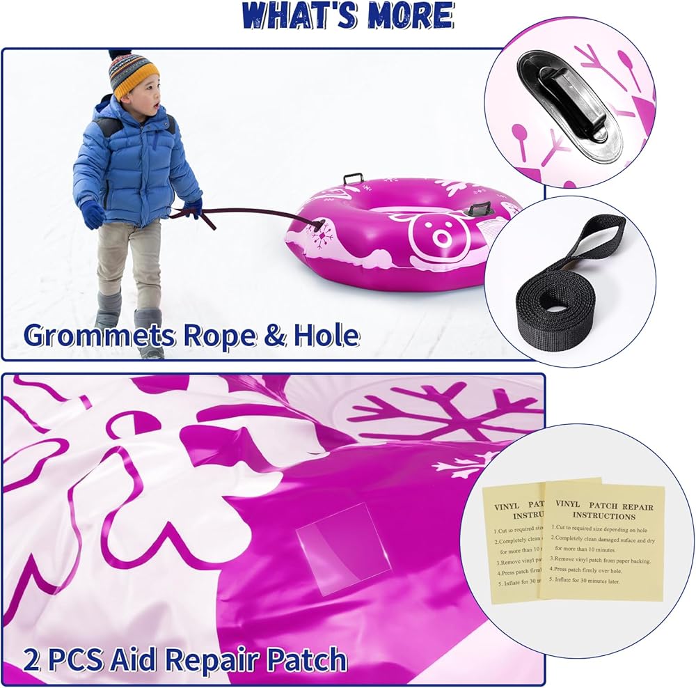【المزيد من الملحقات】بالإضافة إلى ذلك، يأتي أنبوب الثلج كوفاكير مع حبل ورقعتي إصلاح. يسهل الحبل سحب الأنبوب إلى أعلى التل، بينما يمكن استخدام الرقع المساعدة لإصلاح أي ثقوب أو تسربات ناجمة عن الحوادث بسرعة وسهولة. يعد أنبوب الثلج هذا أيضًا خيارًا ممتازًا لهدايا الشتاء. الشتاء قصير، فلماذا لا تذهب للعب في الثلج باستخدام أنبوب الثلج على الفور؟